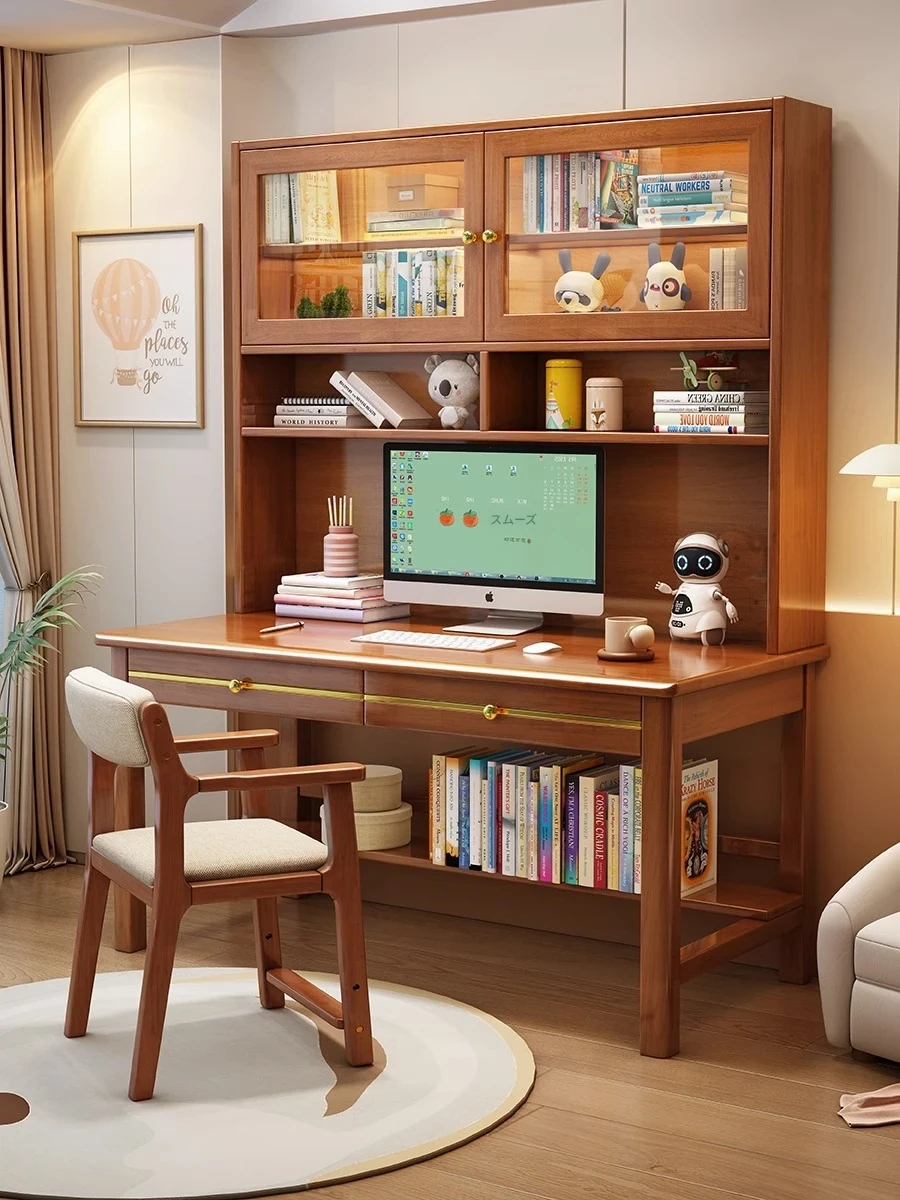 ウーノ無垢材リビングデスク・本棚・キャビネット一体型 家庭用ダブル学生学習デスク シンプルでモダンな昇降式パソコンデスク【効率的な学習空間を提供】