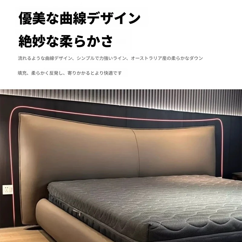 ラッセン・エレファントイヤー イタリアンミニマリズム レザーベッド - トレンドのスタイルで極上の安らぎを提供! おしゃれで快適な寝室作りに最適な真皮ベッド。