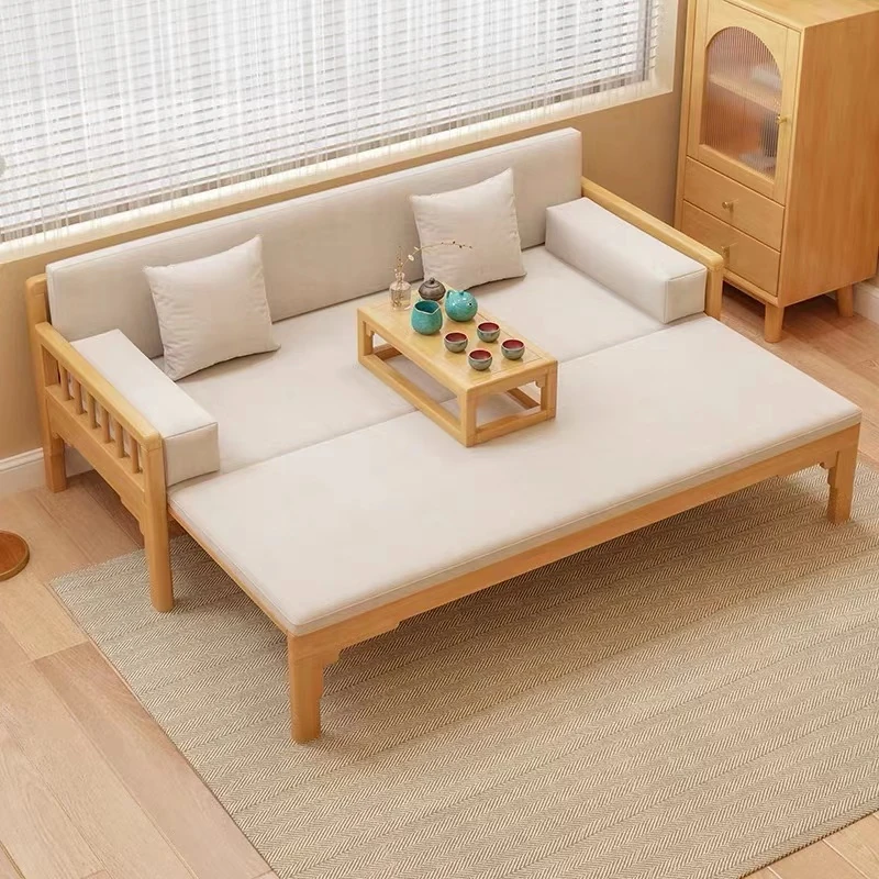 富巧匠の全木製ロハンベッド【新中式】小型住宅に最適!シンプルでスマートなデザイン、プルアウト機能付き2WAYソファーベッドで、多機能を実現。快適な眠りとスタイリッシュな空間を両立!