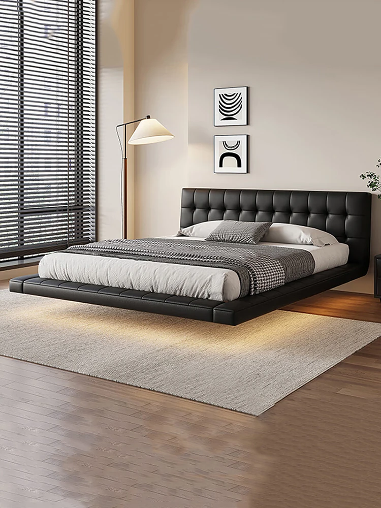陶益 Italian Minimalist Floating Leather Headboard Bed - 1.8m Large Double Bed for Master Bedroom, Wabi-Sabi Style, Premium Top-Grain Leather Design. Perfect for Modern Living Spaces!