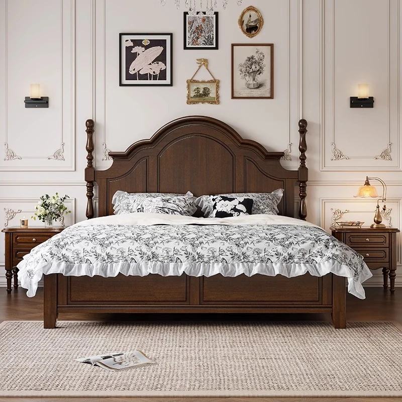 "North Luxury South Elegance: Vintage American Solid Wood Bed - Modern Minimalist 1.8m Double Bed for Master Bedroom & 1.5m French Princess Bed - Perfect Blend of Style and Comfort!"
