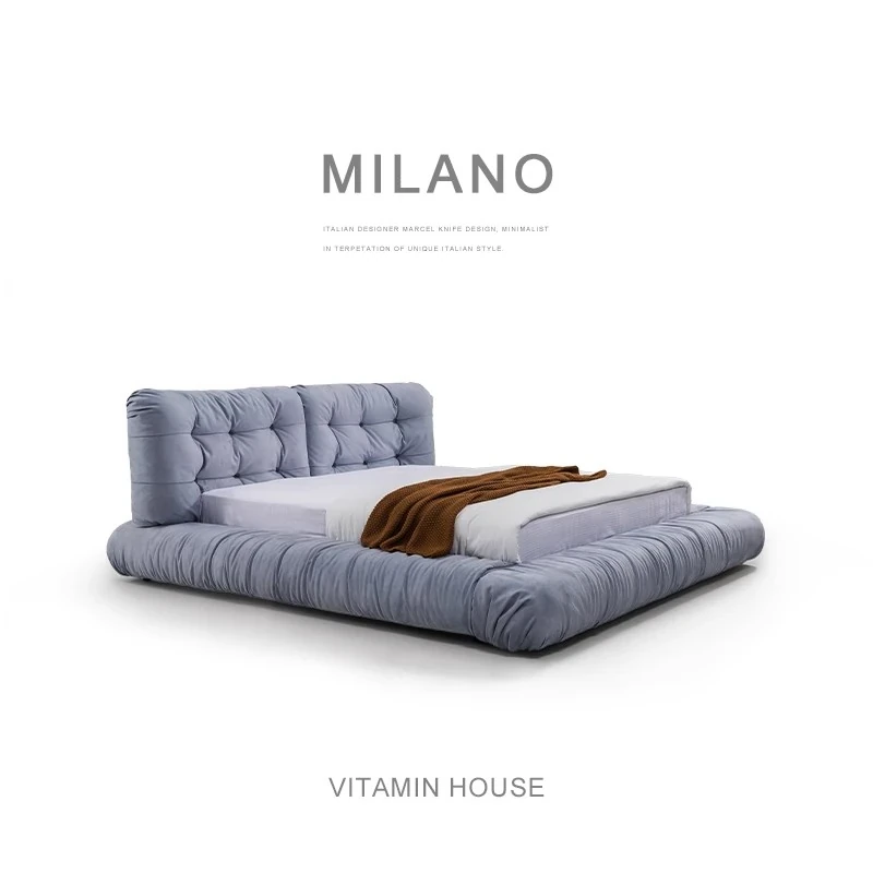 Elegant Italian Minimalist Suede Upholstered Bed - Cozy, Stylish, and Durable for Modern Bedrooms