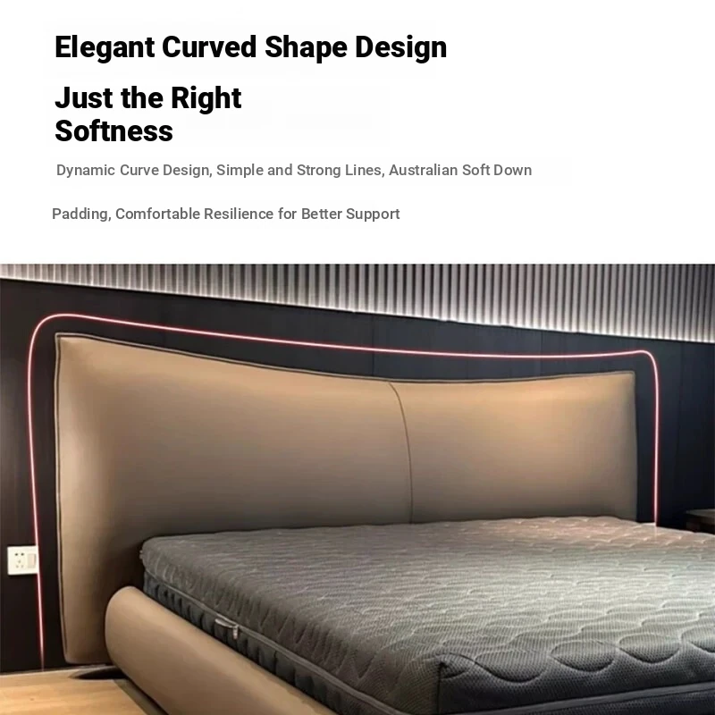 Naiqiu Italian Minimalist Floating Bed – Modern Luxury Real Leather Headboard for Master Bedroom – New Design 1.8m King Size Soft Bed, Perfect Blend of Style and Comfort