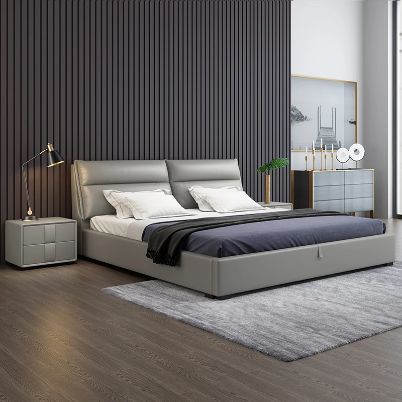 Zhenpi Italian Style Genuine Leather Double Bed for Master Bedroom - Exquisite Design, Luxurious Comfort, Perfect for Your Dream Space!