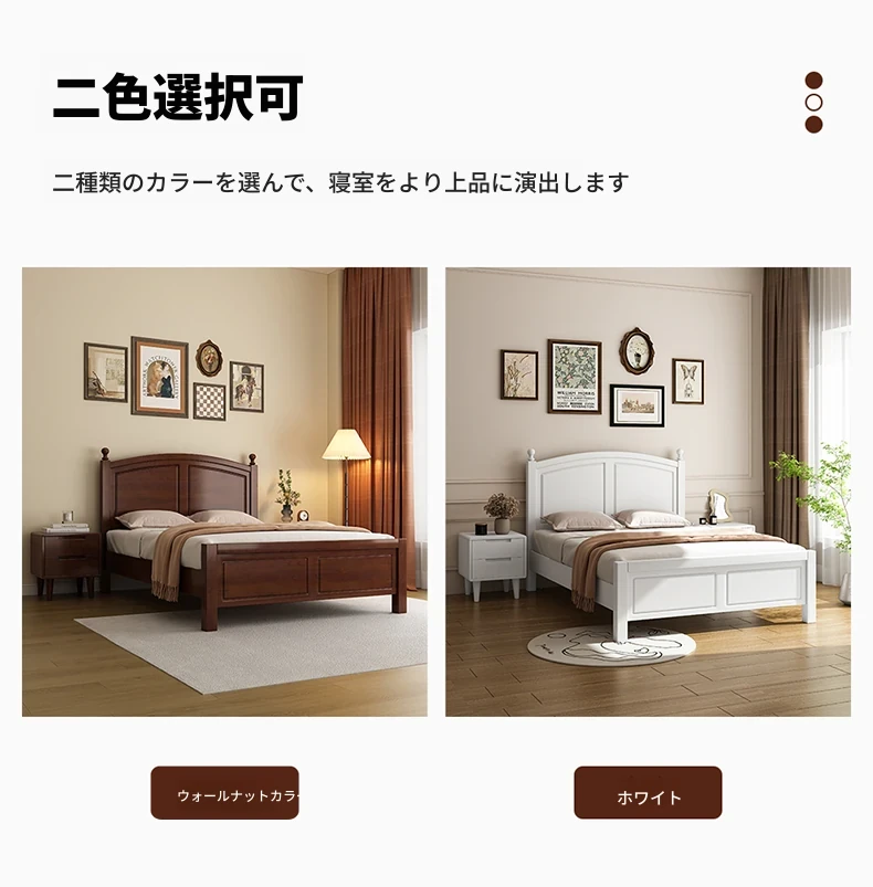 無垢材ベッド+ナイトスタンド*2 無垢材ベッド+ナイトスタンド*2