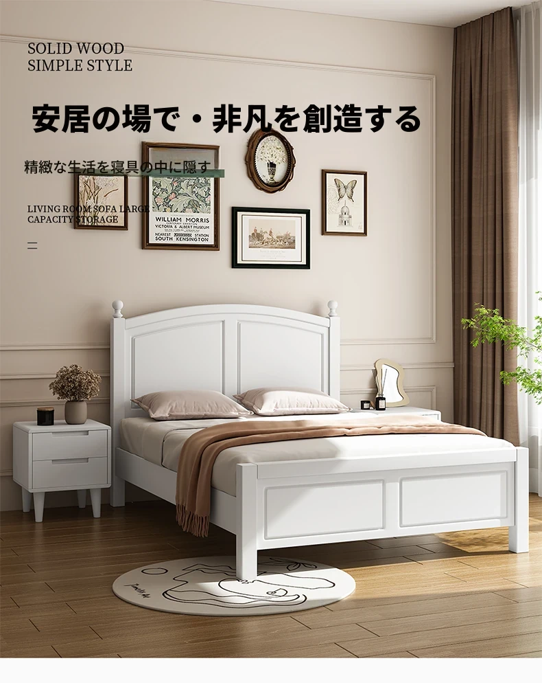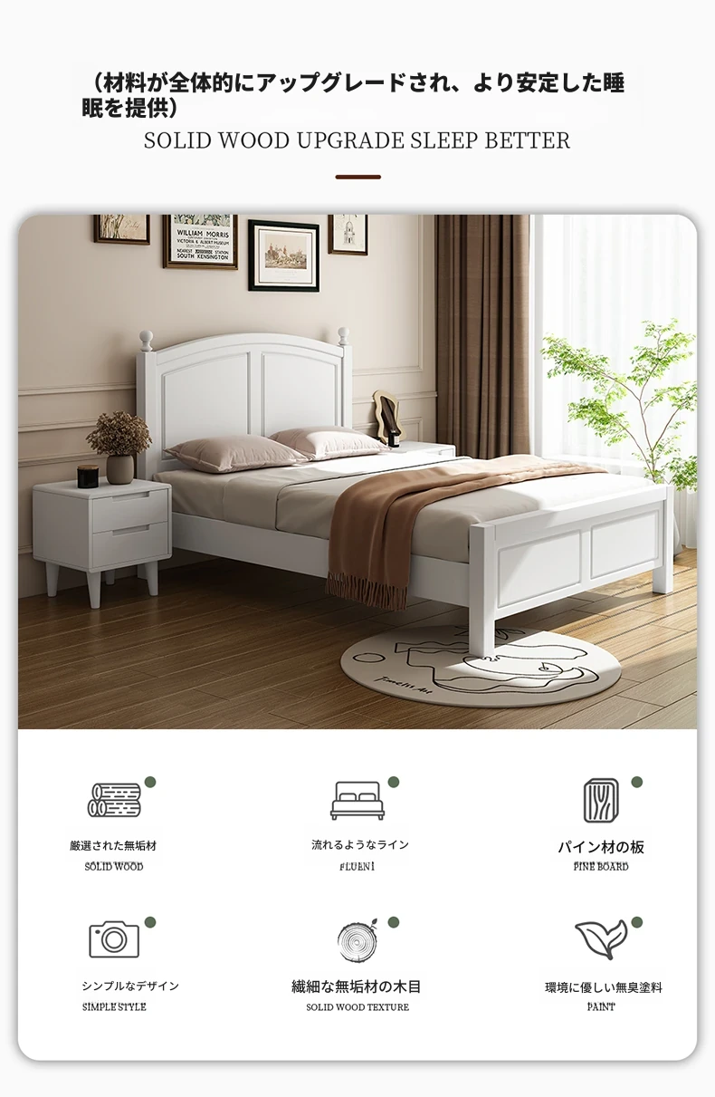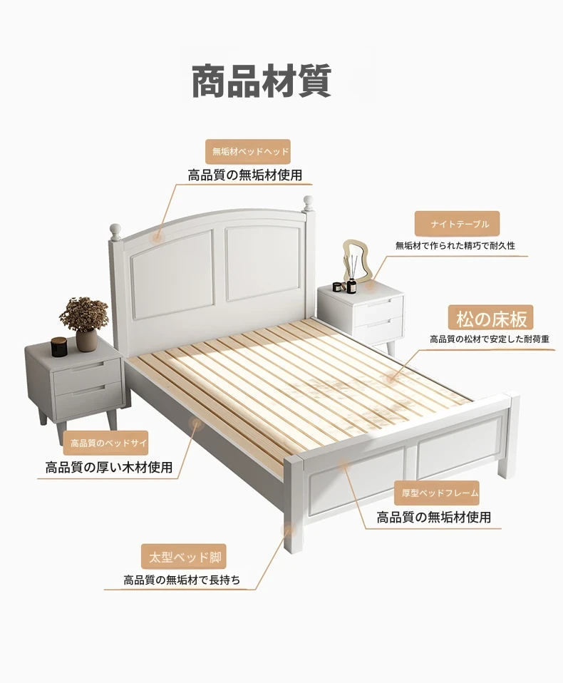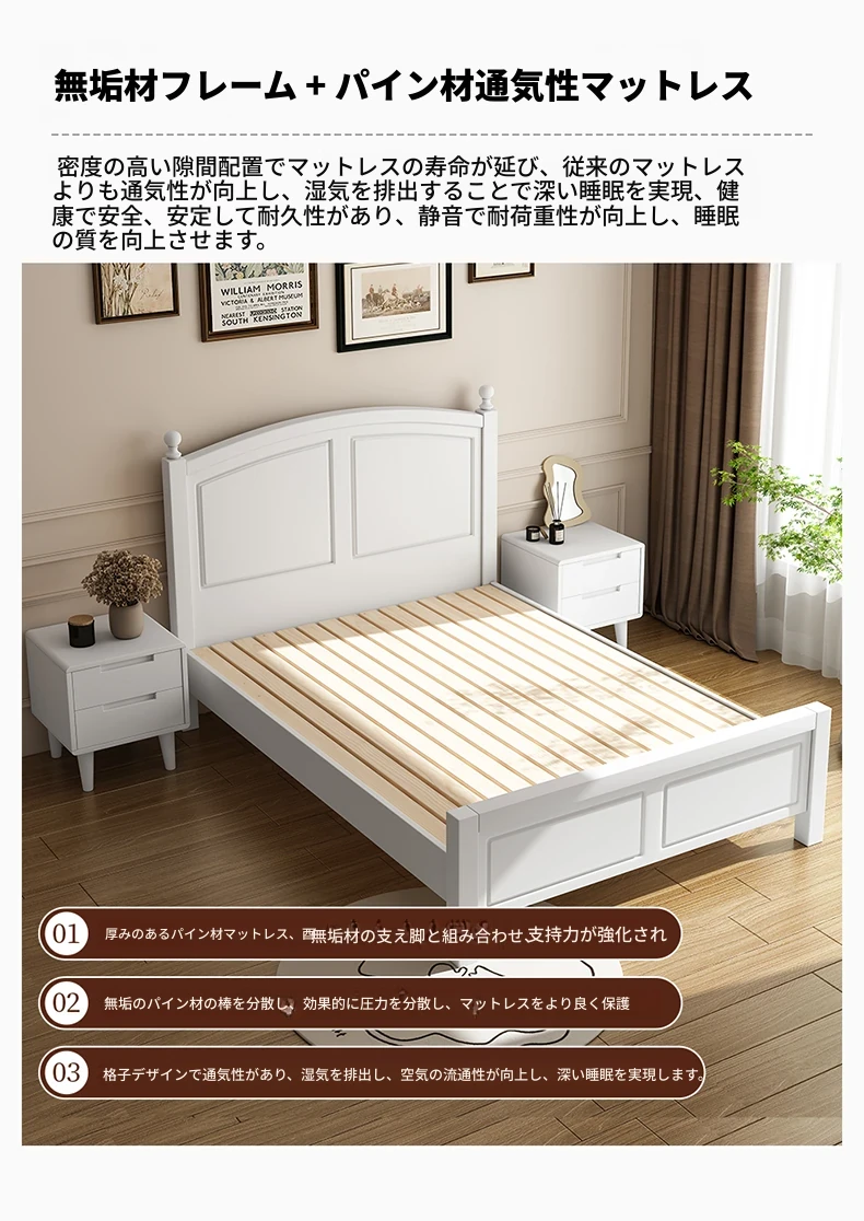無垢材ベッド+ナイトスタンド*2+9cmラテックスココナッツマットレス 無垢材ベッド+ナイトスタンド*2+9cmラテックスココナッツマットレス