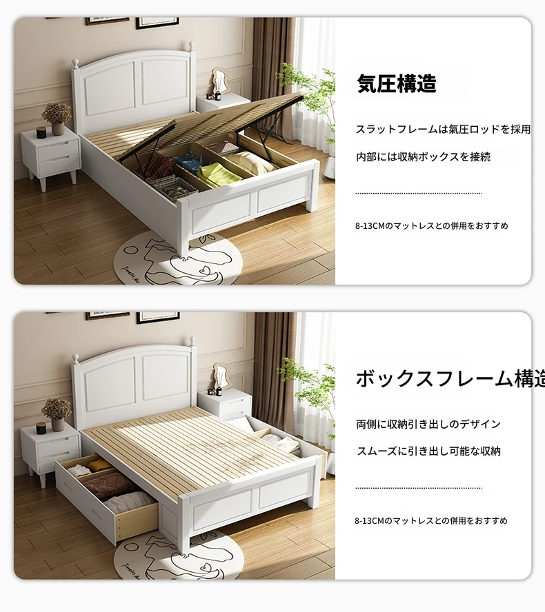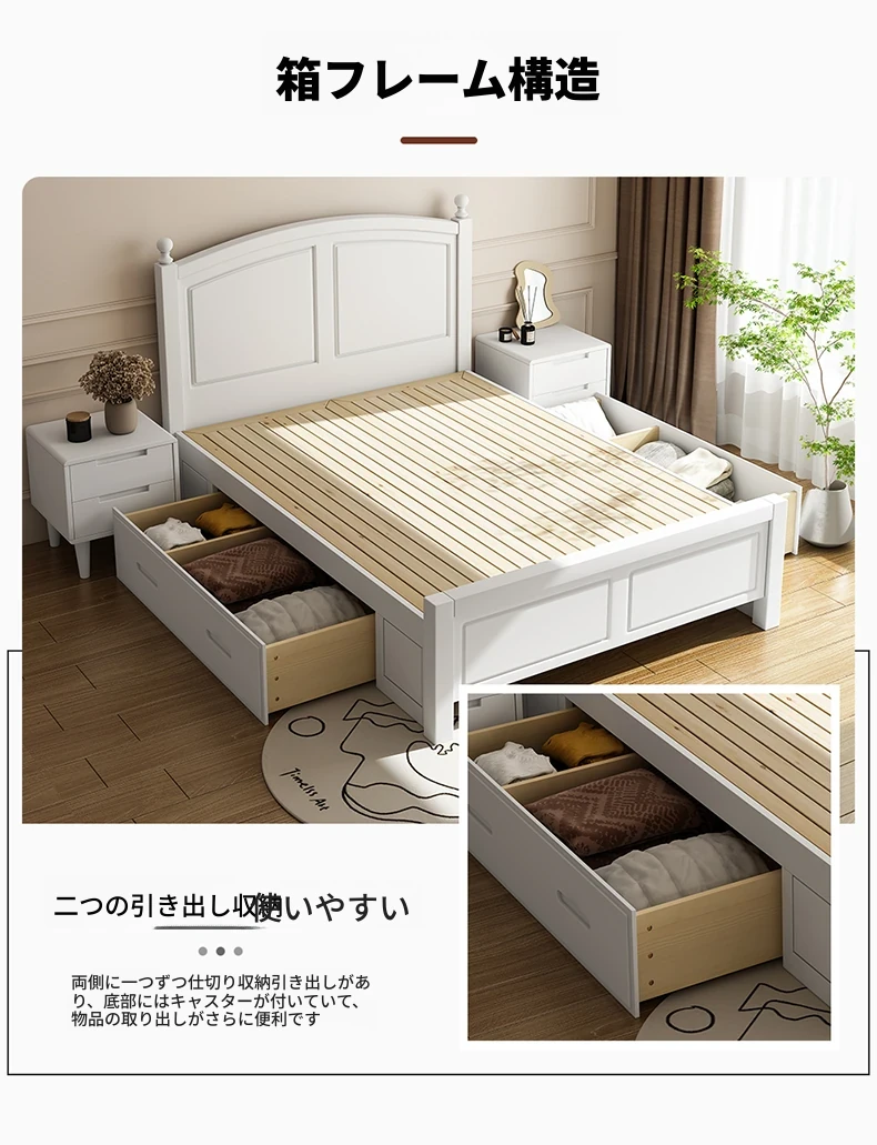 几趣現代シンプル天然木ベッド 1.5m収納付きベッド 1.8mダブル/シングルベッド プリンセスベッド 1.2m小スペース向け理想的ベッド【収納力抜群】【おしゃれなデザイン】