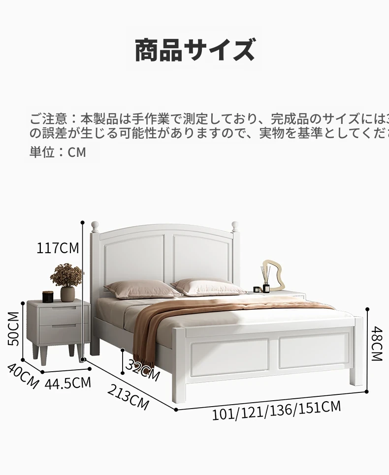 無垢材ベッド+ナイトスタンド*1+9cmラテックスココナッツマットレス 無垢材ベッド+ナイトスタンド*1+9cmラテックスココナッツマットレス