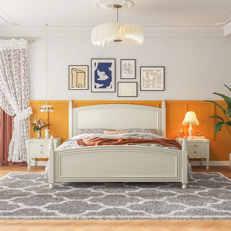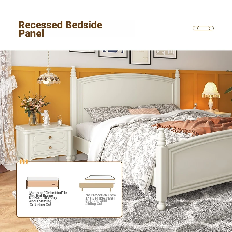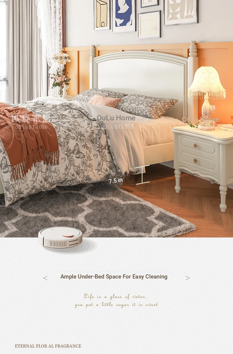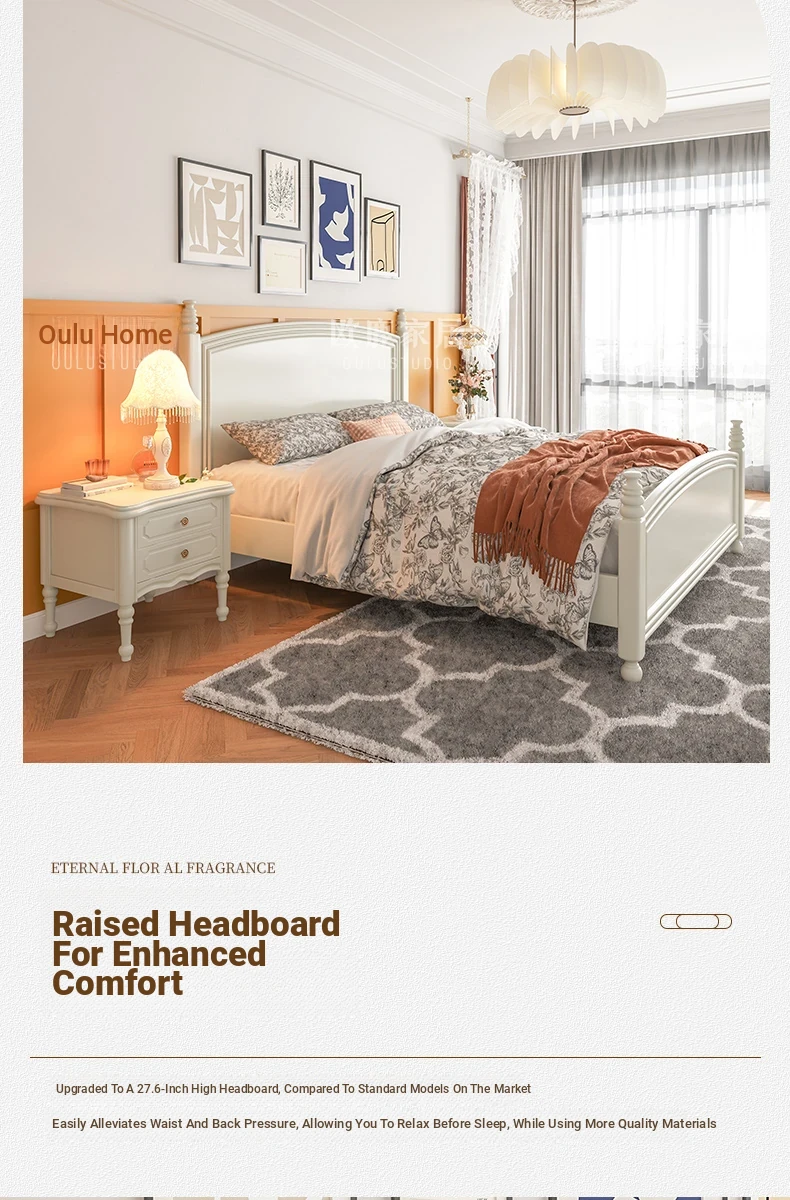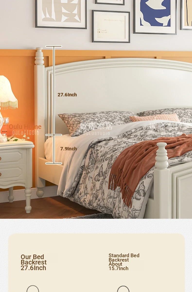 オウルク アメリカンスタイル ホワイト ウッド ベッド ヴィンテージ デザイン 1.8m ダブル ベッド ハイボックス 収納付き フレンチクリーム スタイル ウェディング ベッド【優雅で機能的なデザイン】【おしゃれなインテリアにぴったり】
