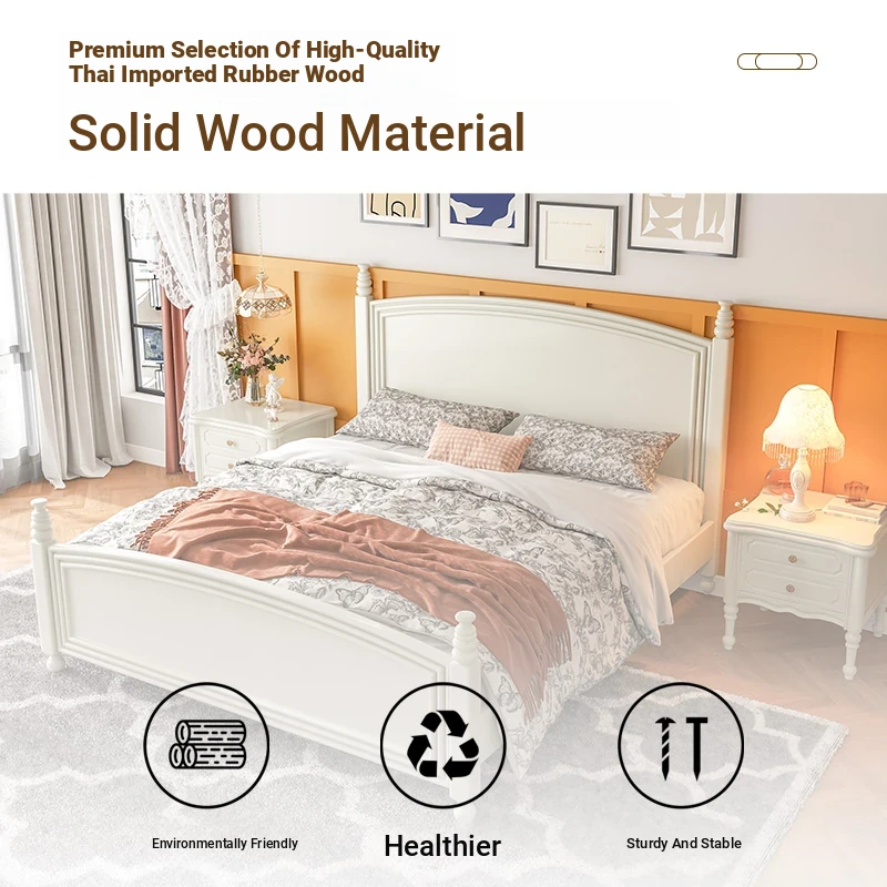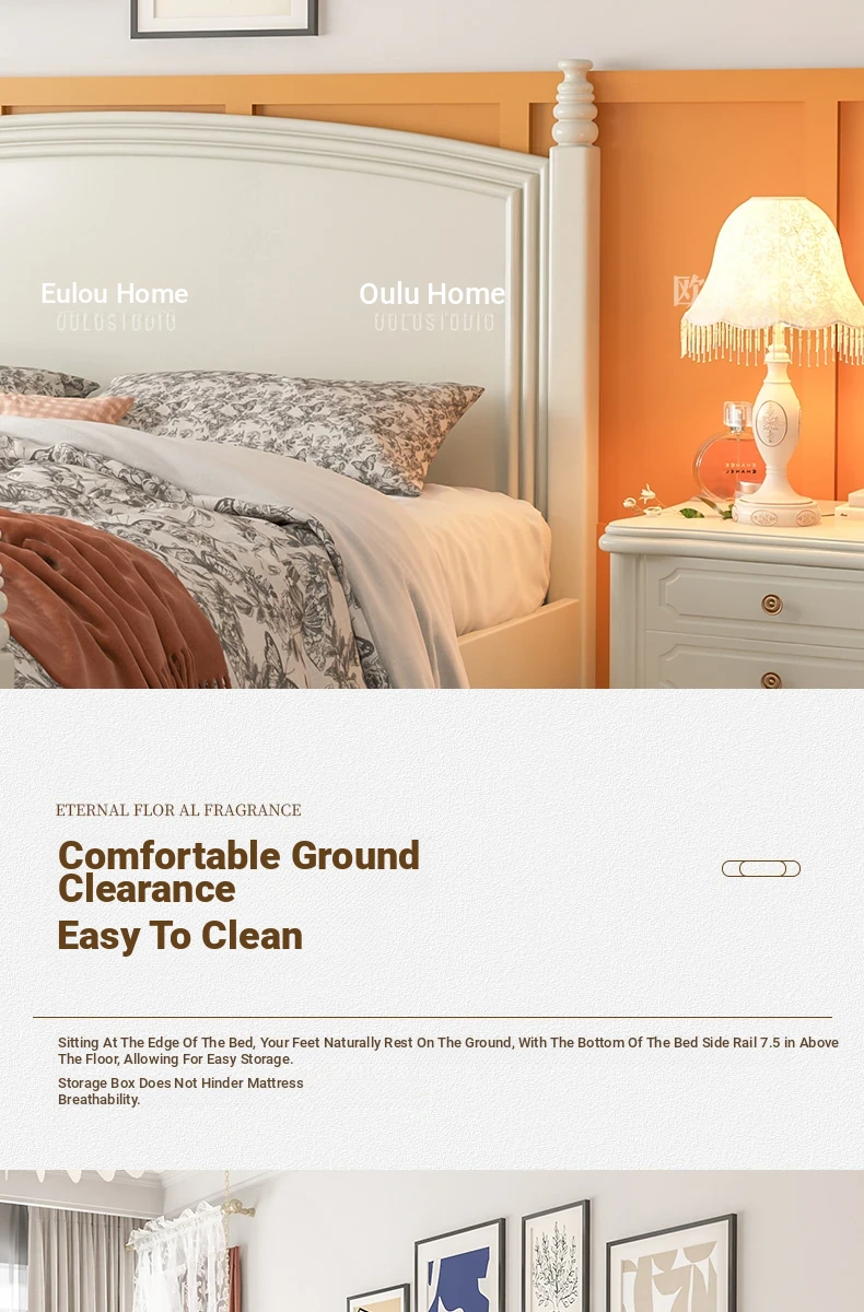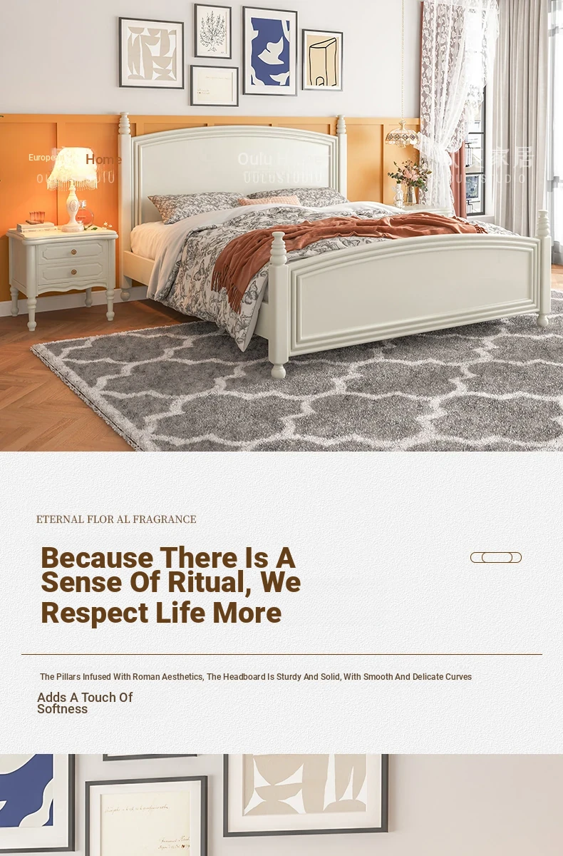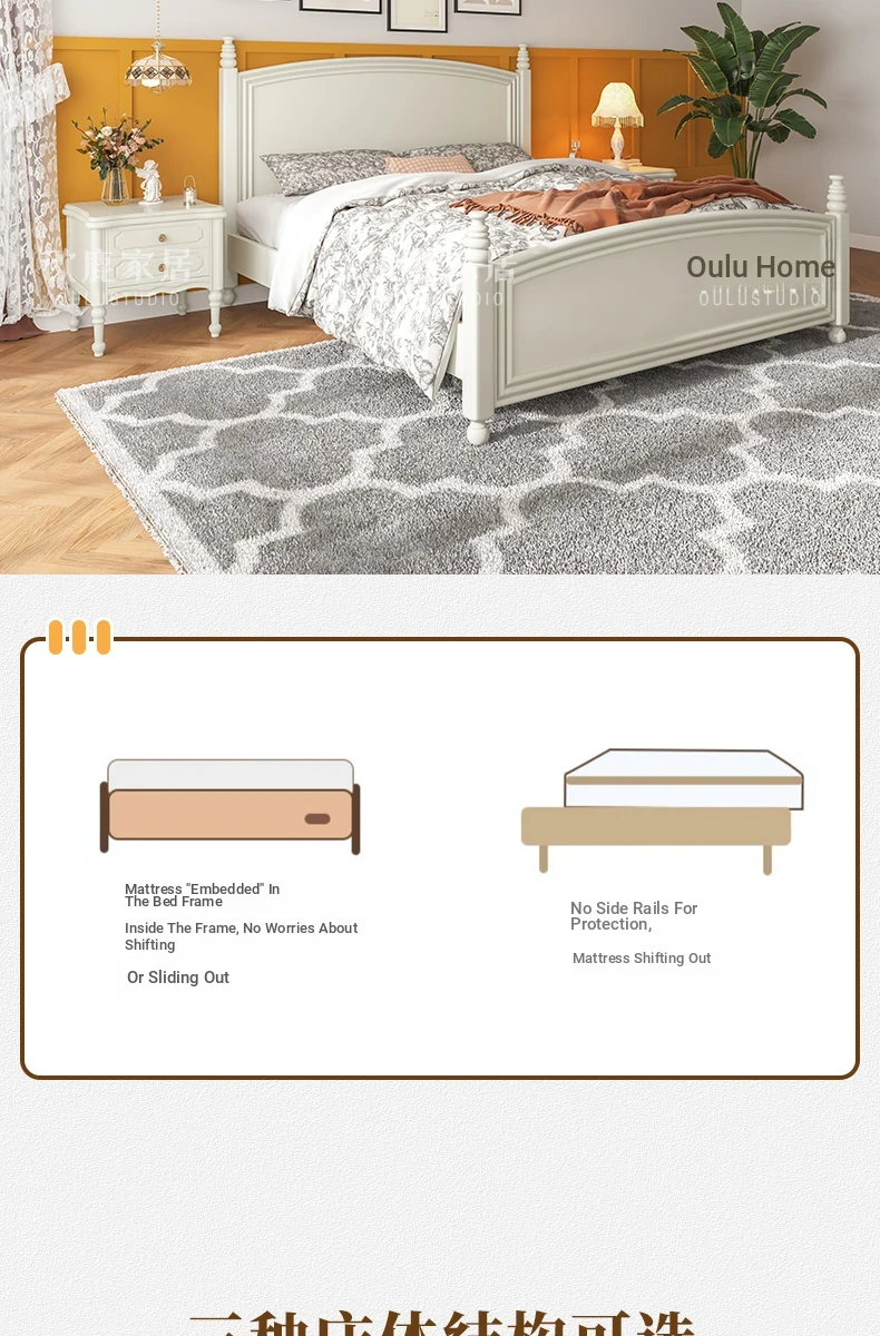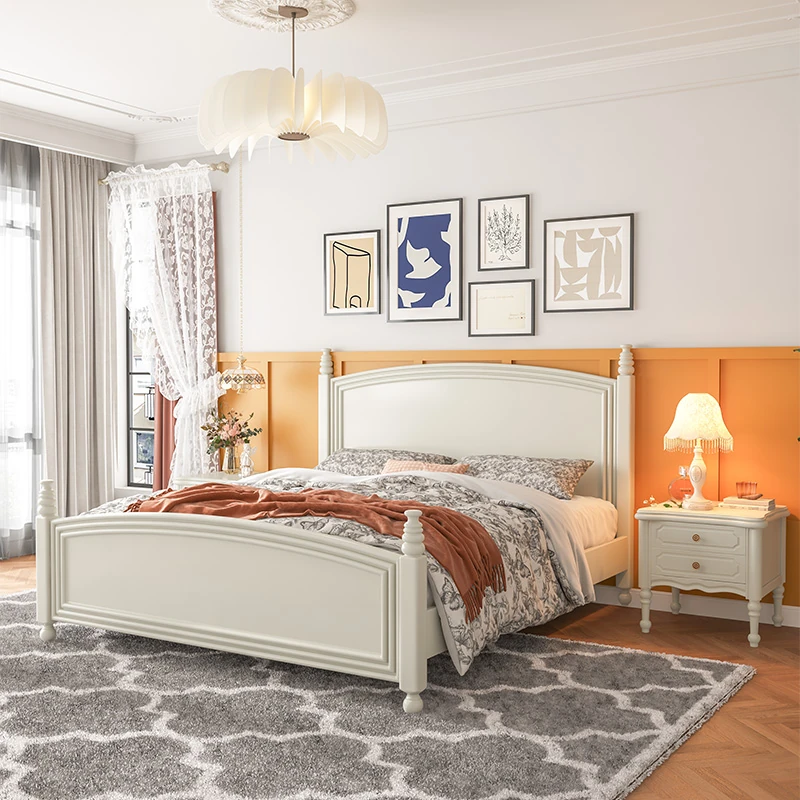 オウルク アメリカンスタイル ホワイト ウッド ベッド ヴィンテージ デザイン 1.8m ダブル ベッド ハイボックス 収納付き フレンチクリーム スタイル ウェディング ベッド【優雅で機能的なデザイン】【おしゃれなインテリアにぴったり】