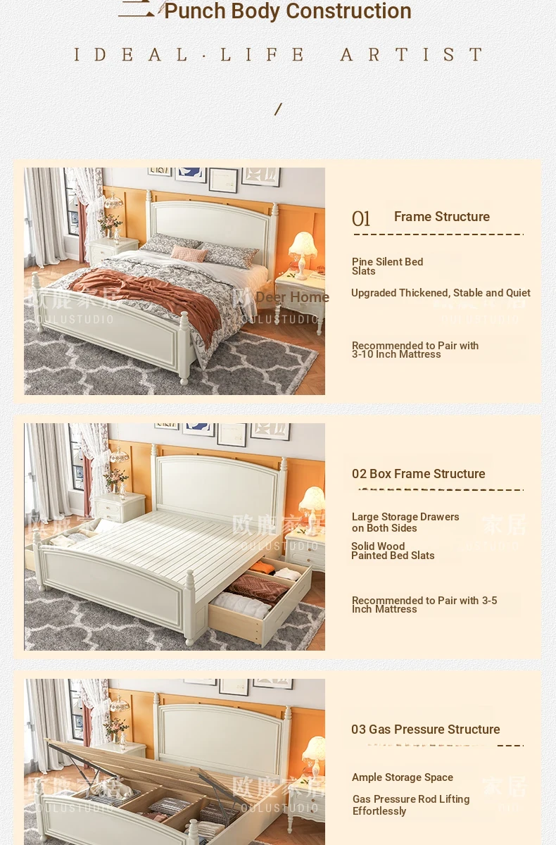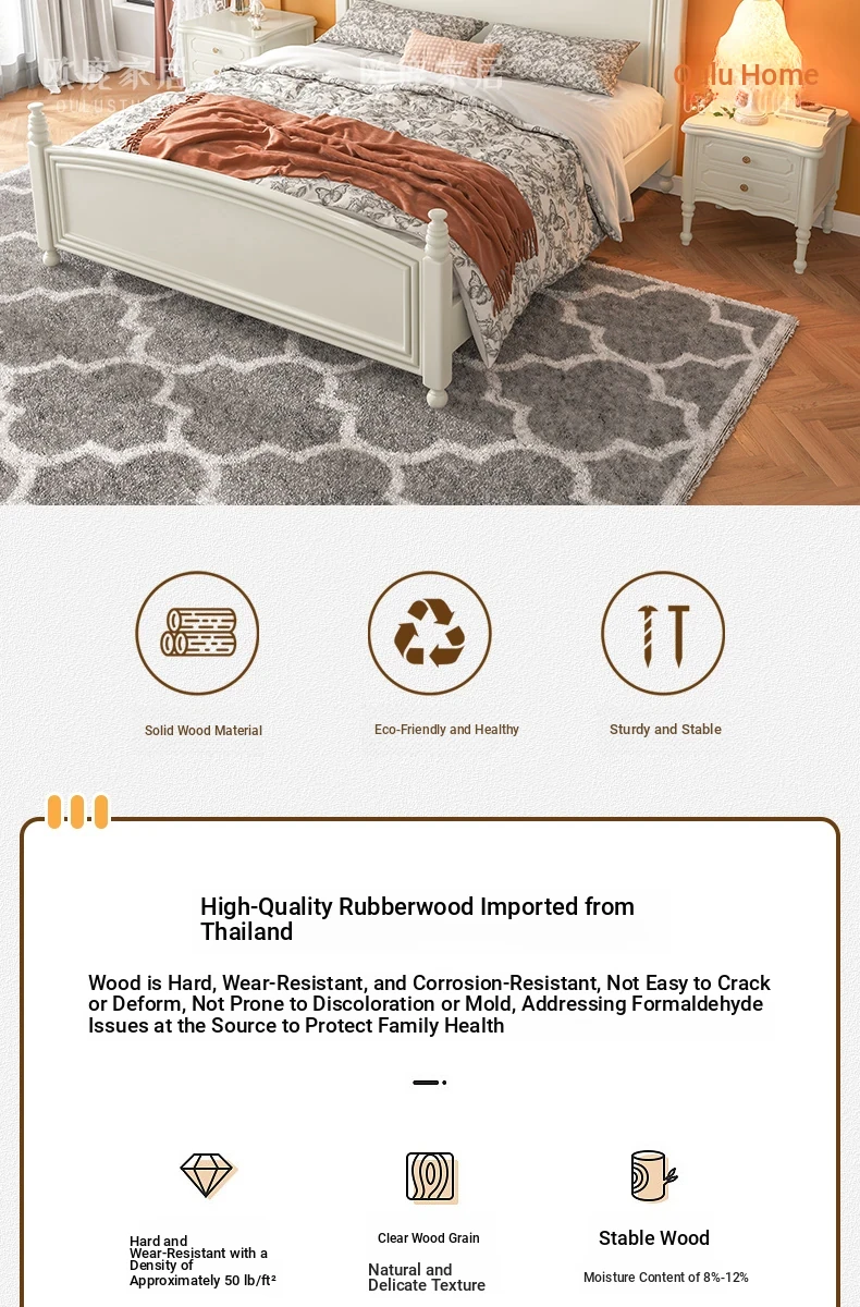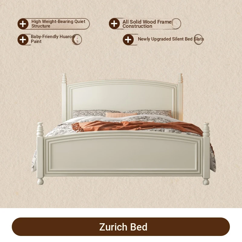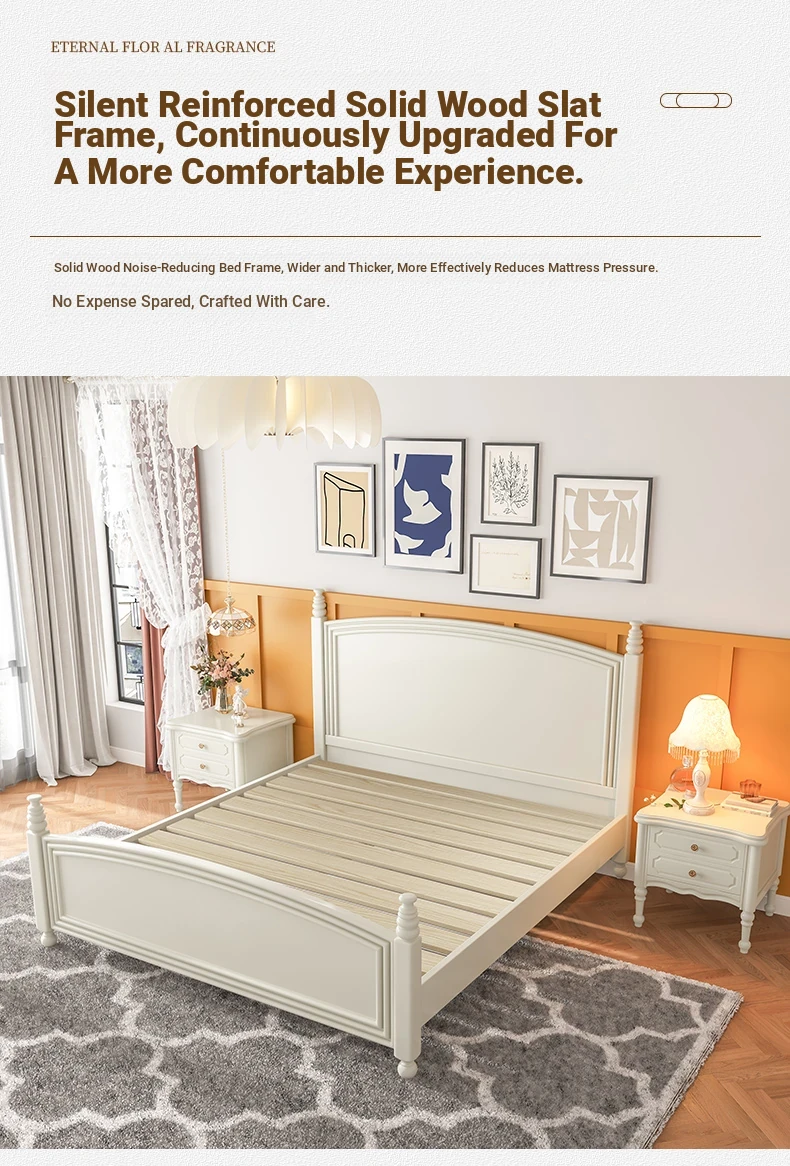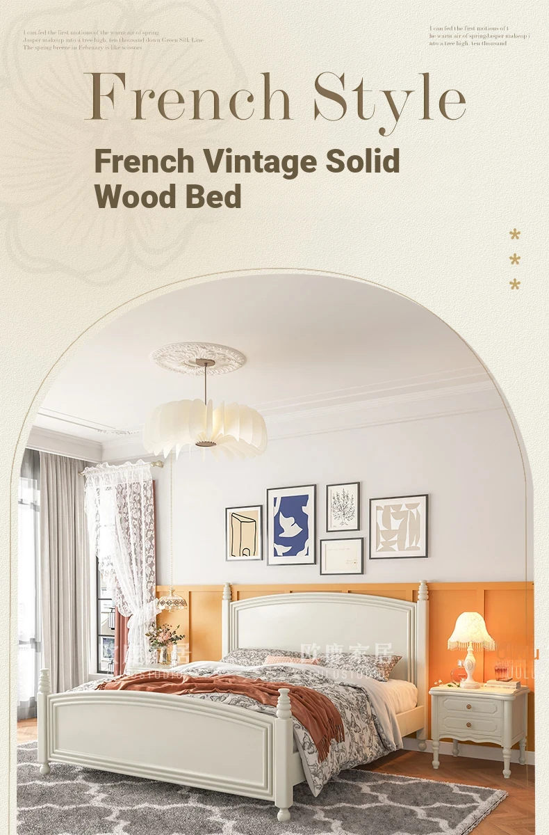 オウルク アメリカンスタイル ホワイト ウッド ベッド ヴィンテージ デザイン 1.8m ダブル ベッド ハイボックス 収納付き フレンチクリーム スタイル ウェディング ベッド【優雅で機能的なデザイン】【おしゃれなインテリアにぴったり】