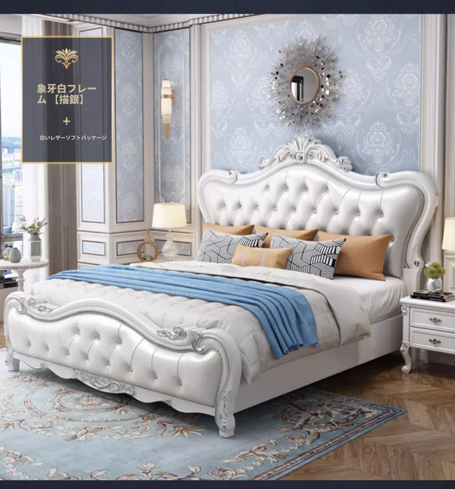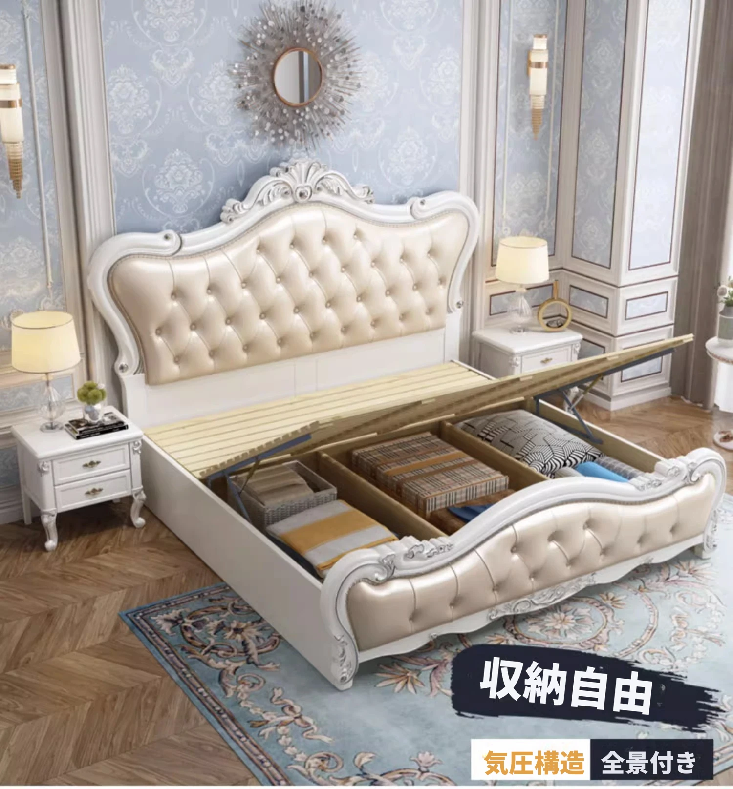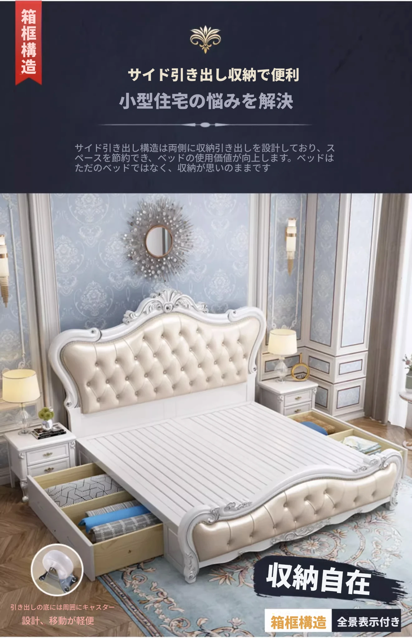 ユーフィ 欧式全実木 ベッド モダンミニマリスト 1.8m シングル&ダブル用 主寝室 1.5m ラグジュアリー ストレージ プリンセス ウェディング ベッド【洗練されたデザインでお部屋を贅沢に演出】