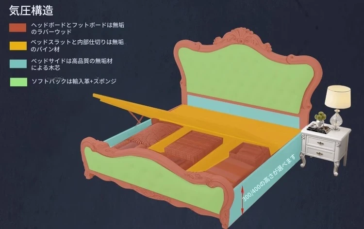 ベッド+九星級クラウン抗菌独立ポケットマットレス22cm+2キャビネット ベッド+九星級クラウン抗菌独立ポケットマットレス22cm+2キャビネット