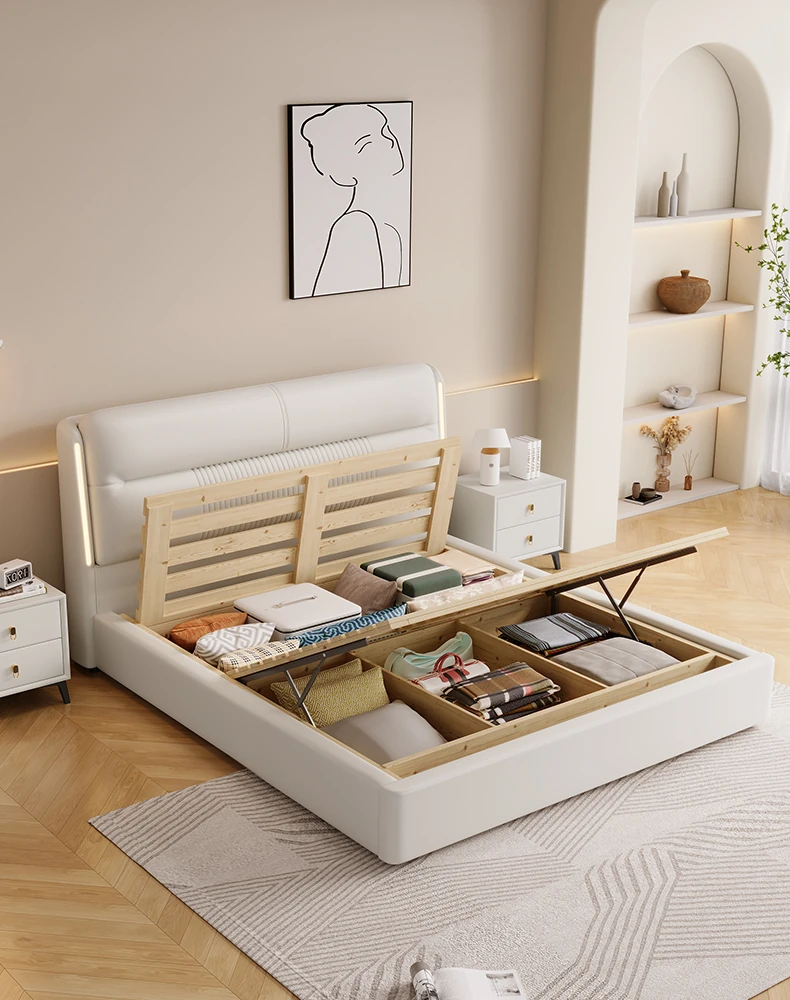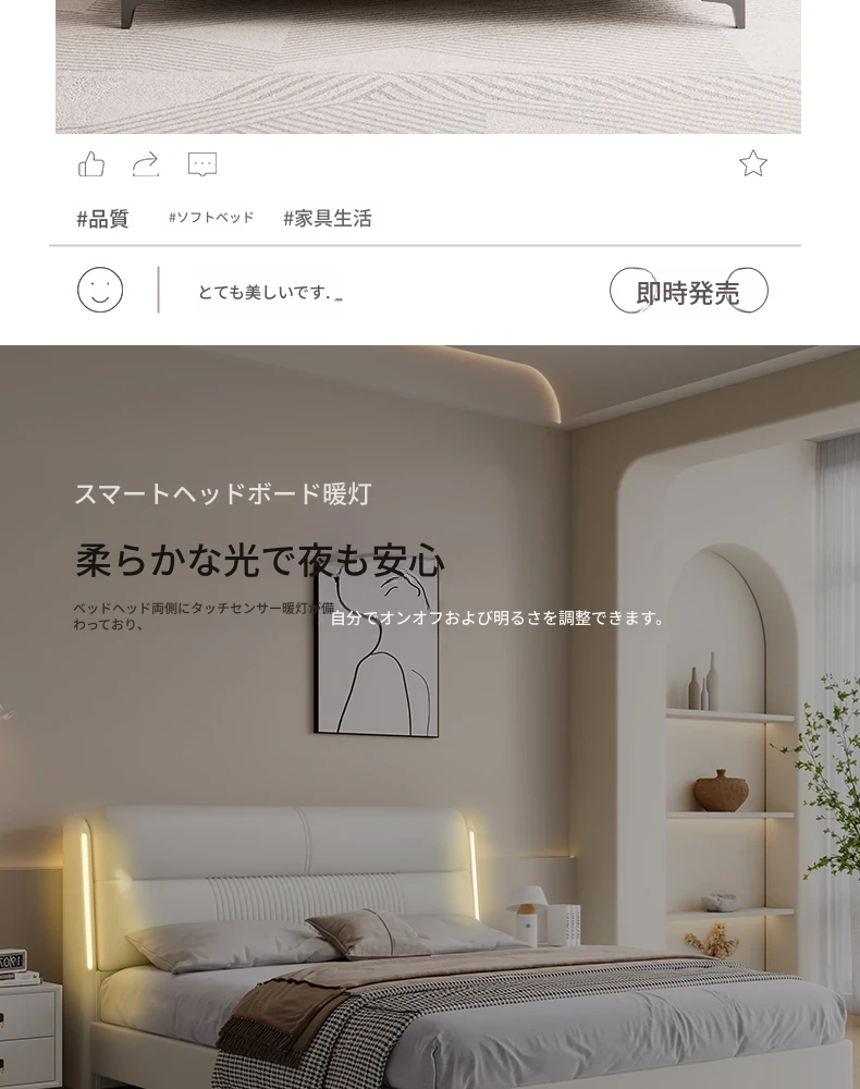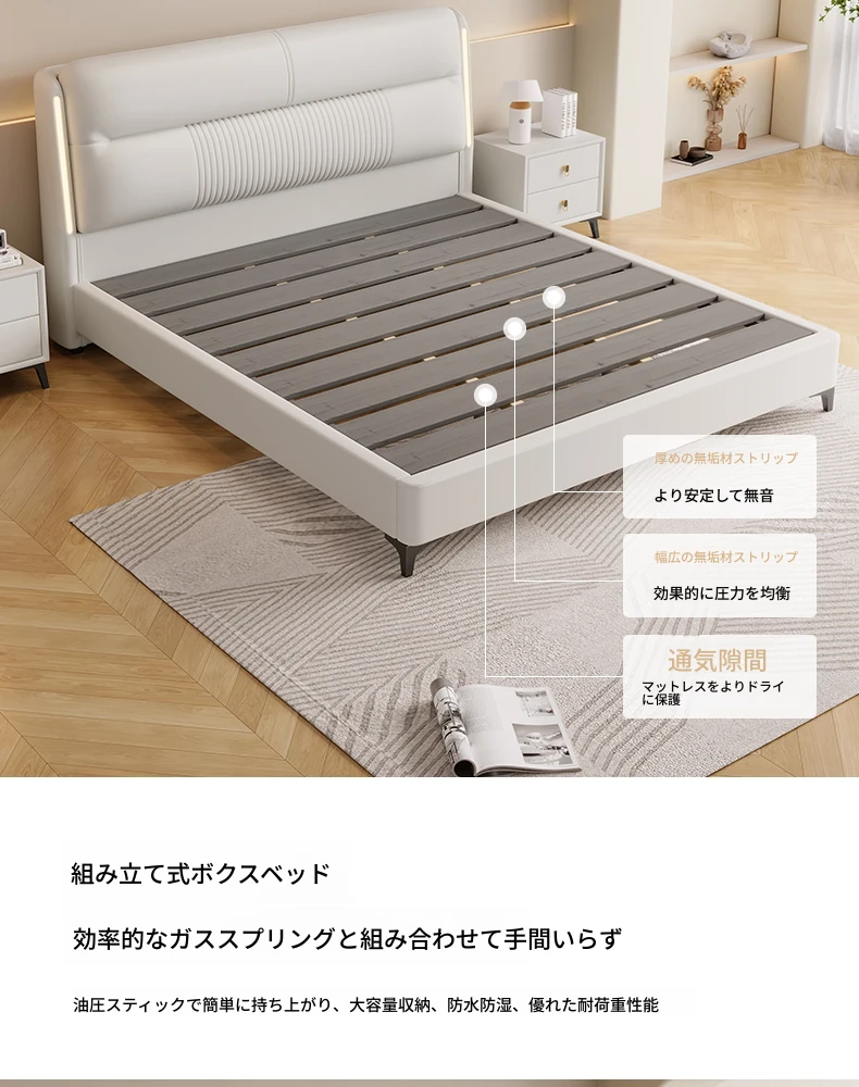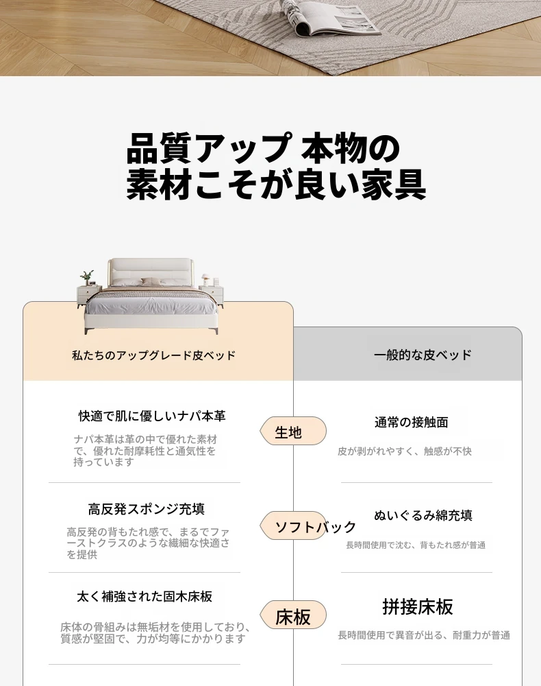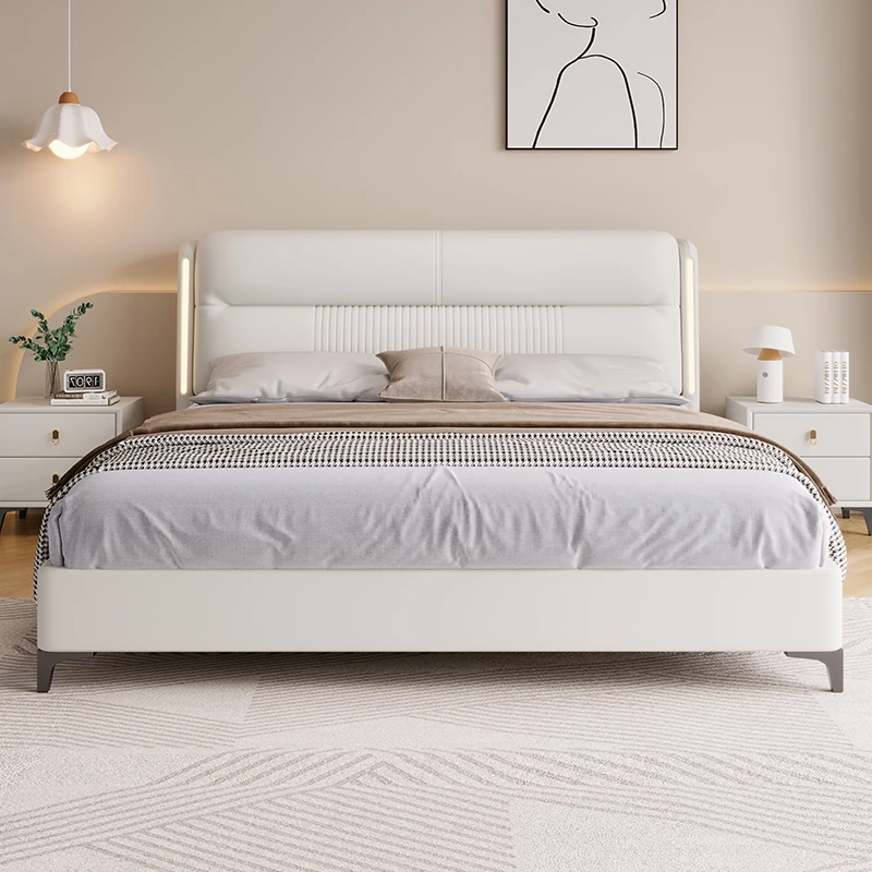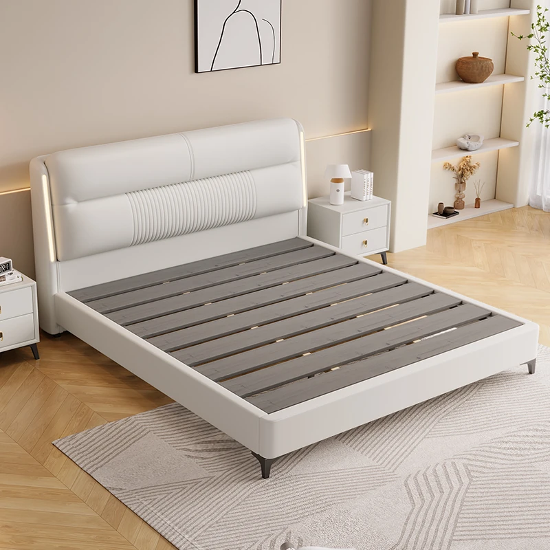 雅麦嘉モダンミニマリスト1.5m新型本革ベッド - 高級感溢れるデザインで贅沢な眠りを実現!快適な寝心地をお届けします。