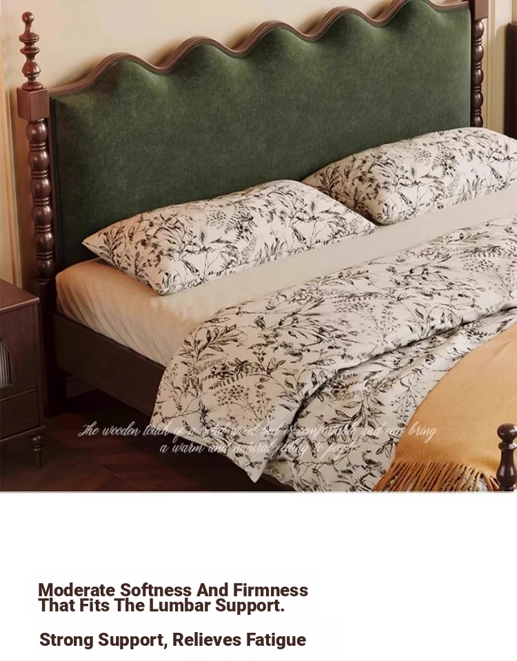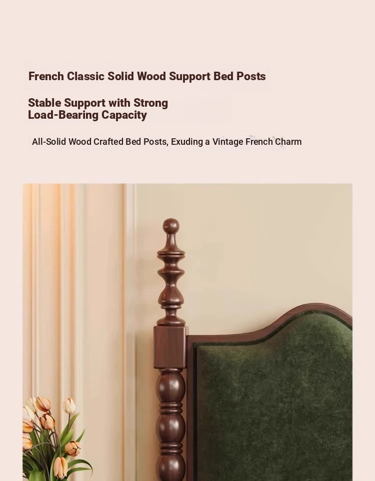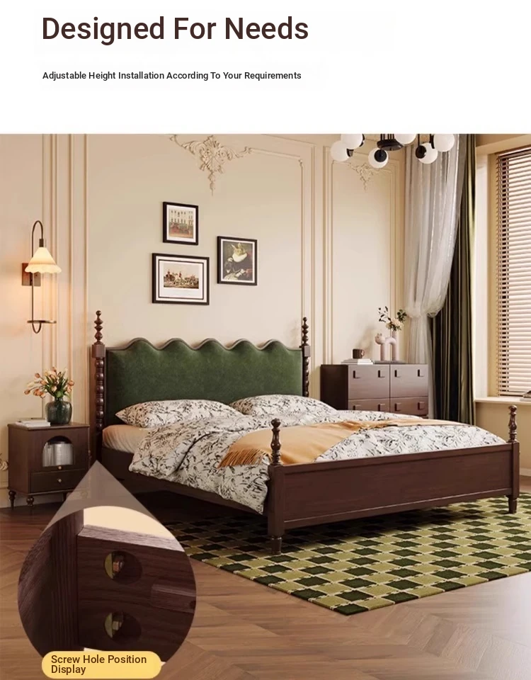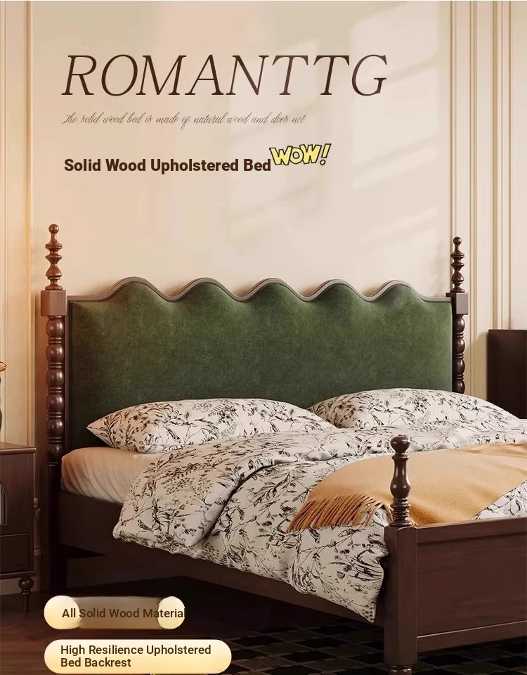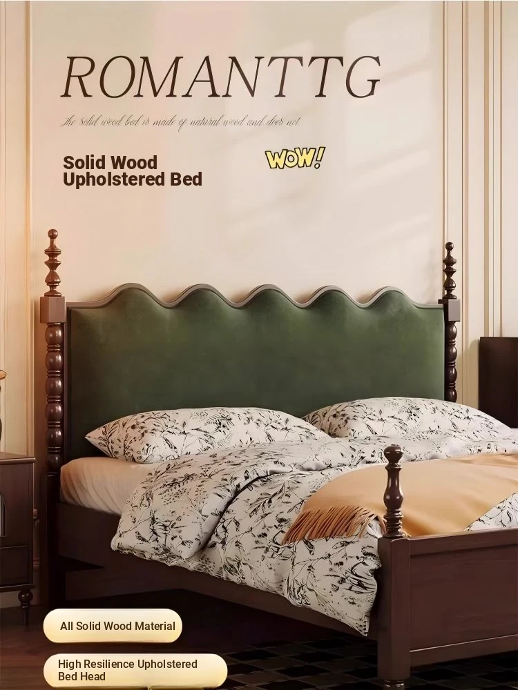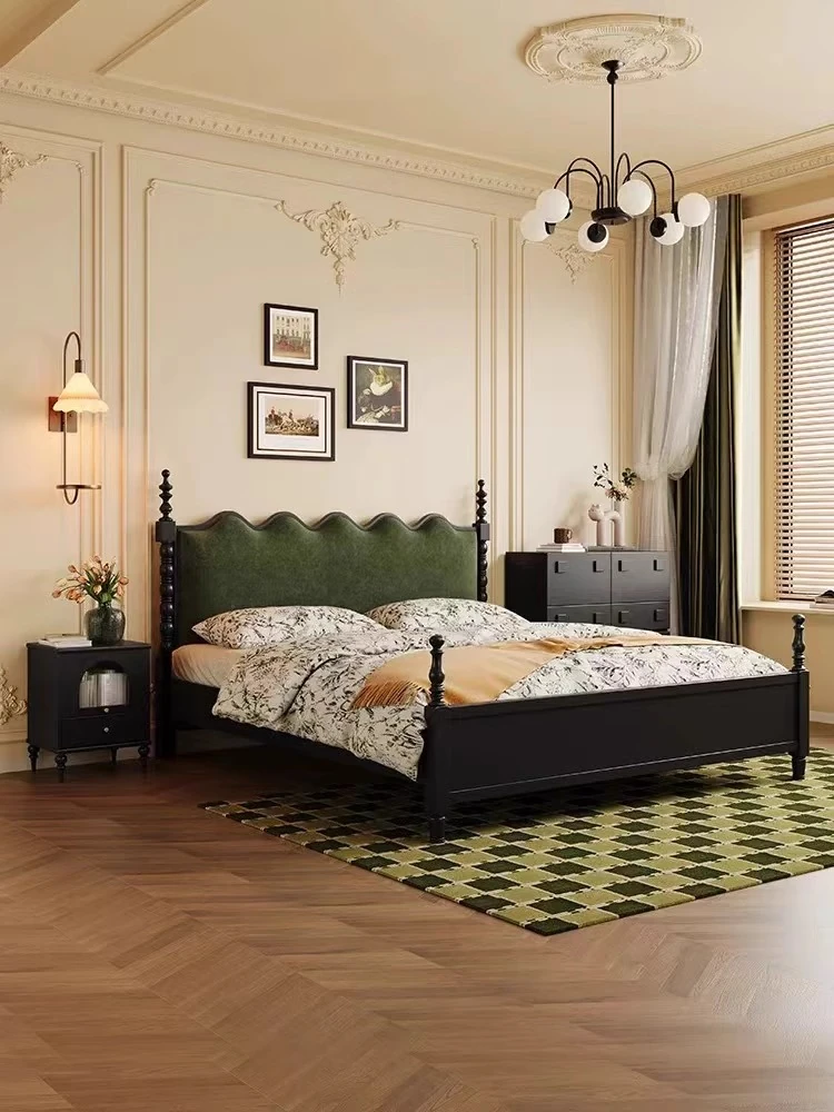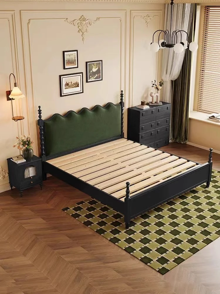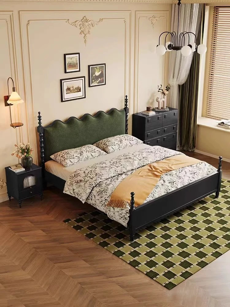 Elegant Vintage French-Style Solid Wood Bed - 1.8m Double Bed in Classic Black, Perfect for Small Spaces with Ample Storage and Cozy Soft Design