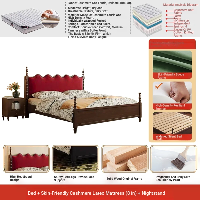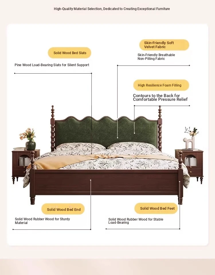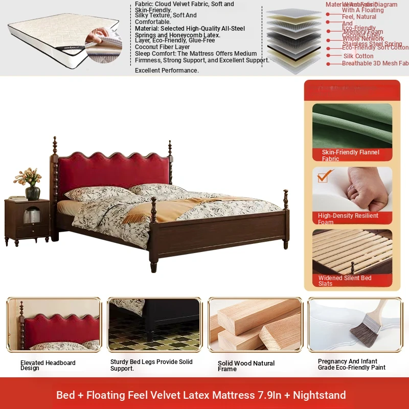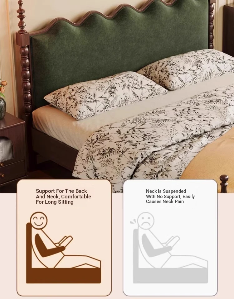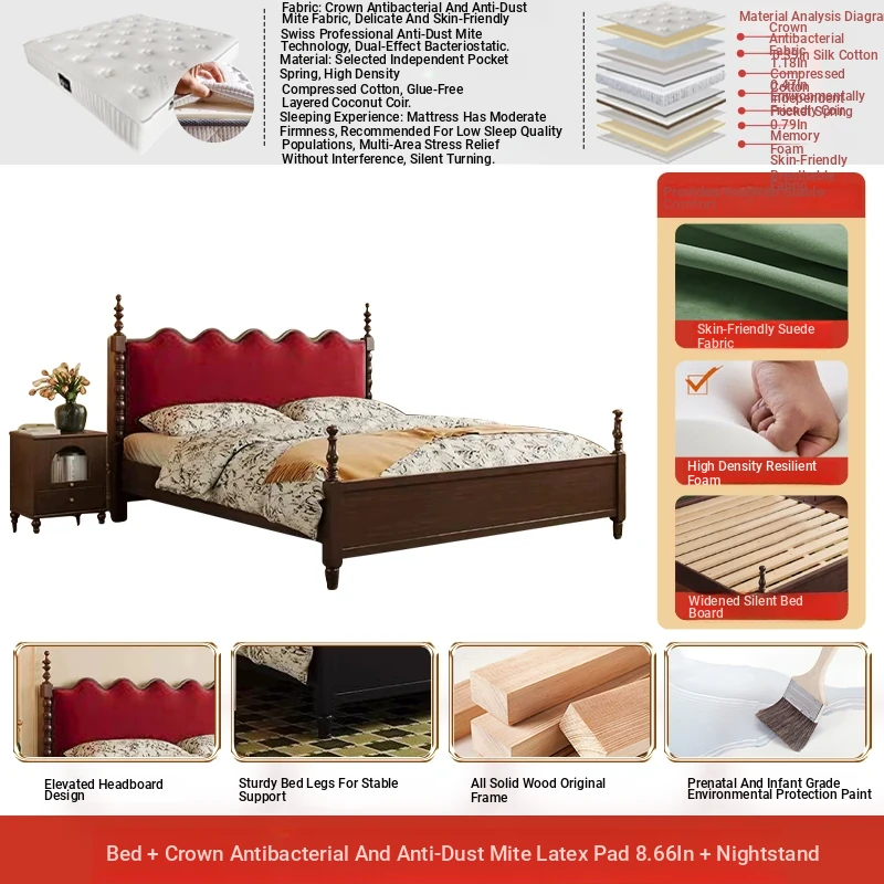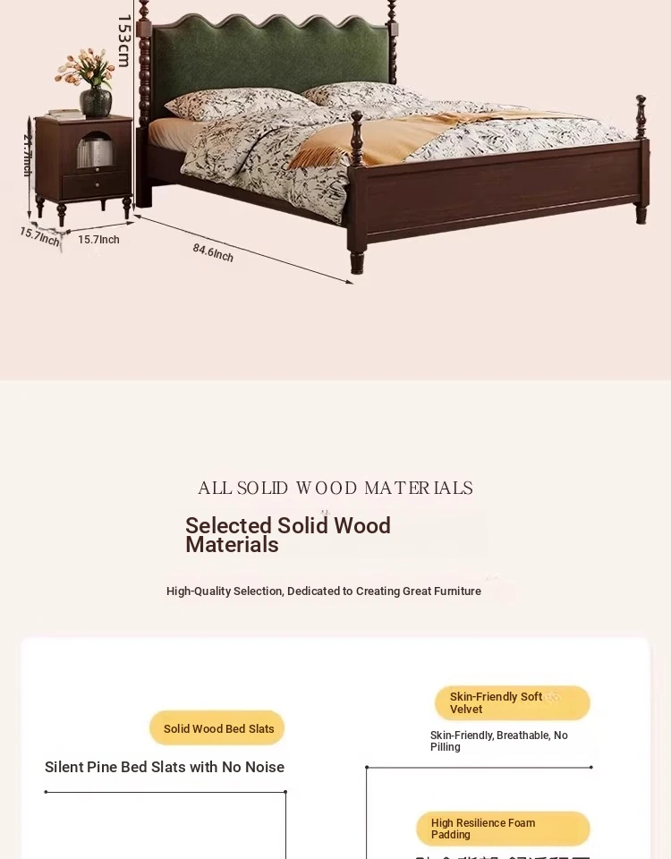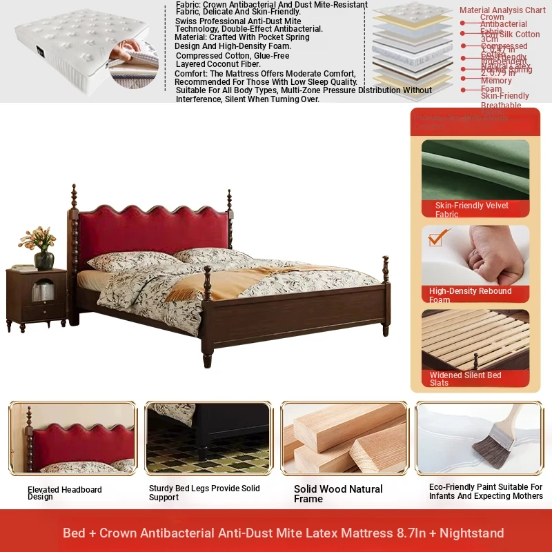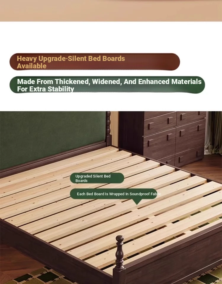 Elegant Vintage French-Style Solid Wood Bed - 1.8m Double Bed in Classic Black, Perfect for Small Spaces with Ample Storage and Cozy Soft Design