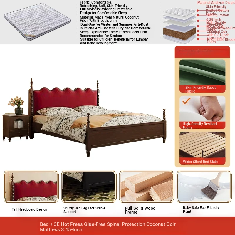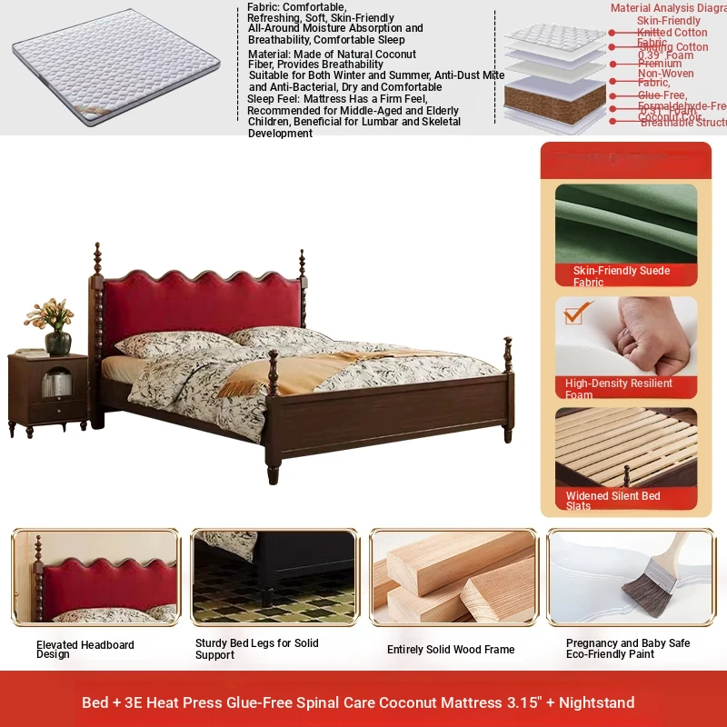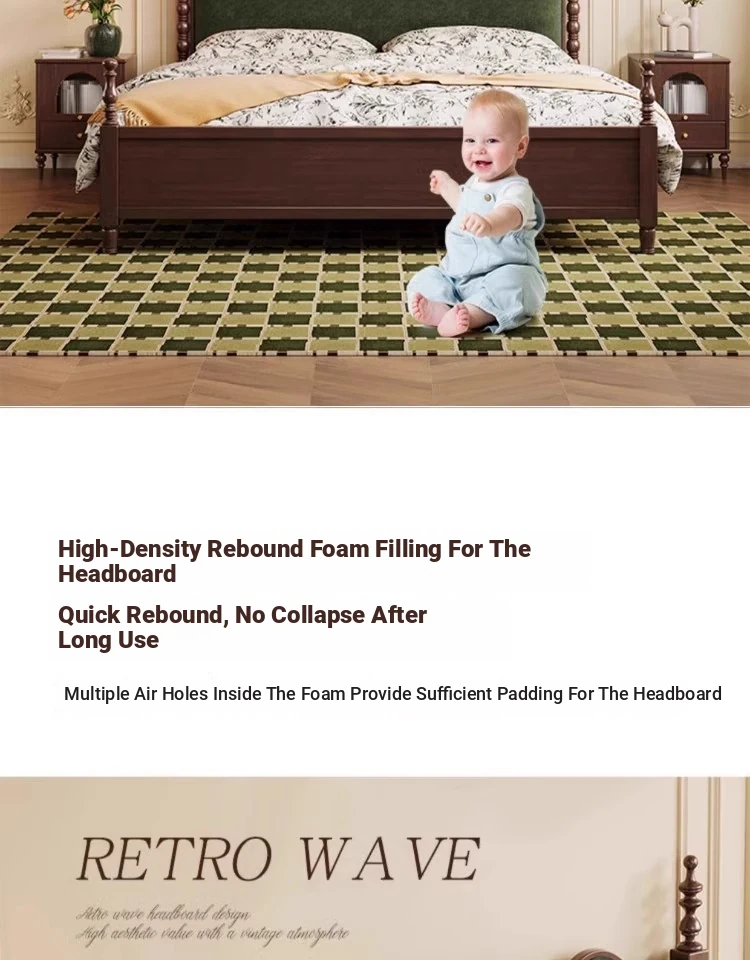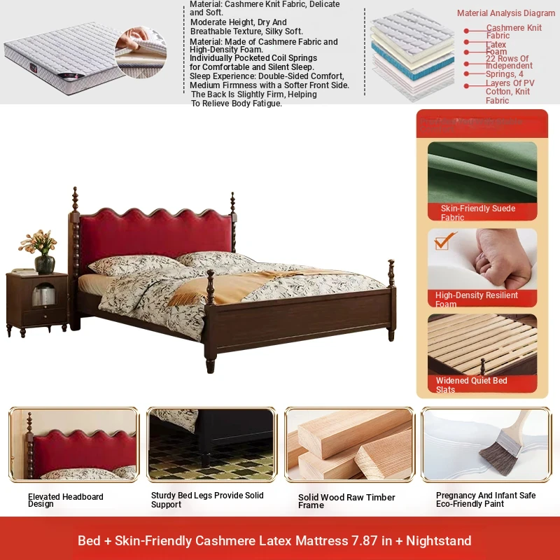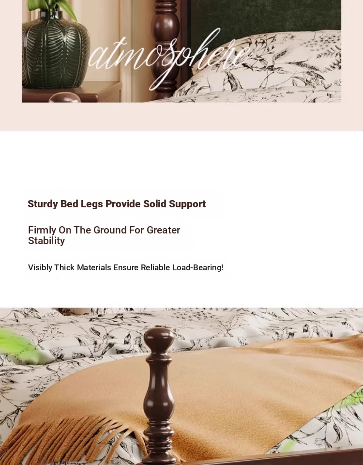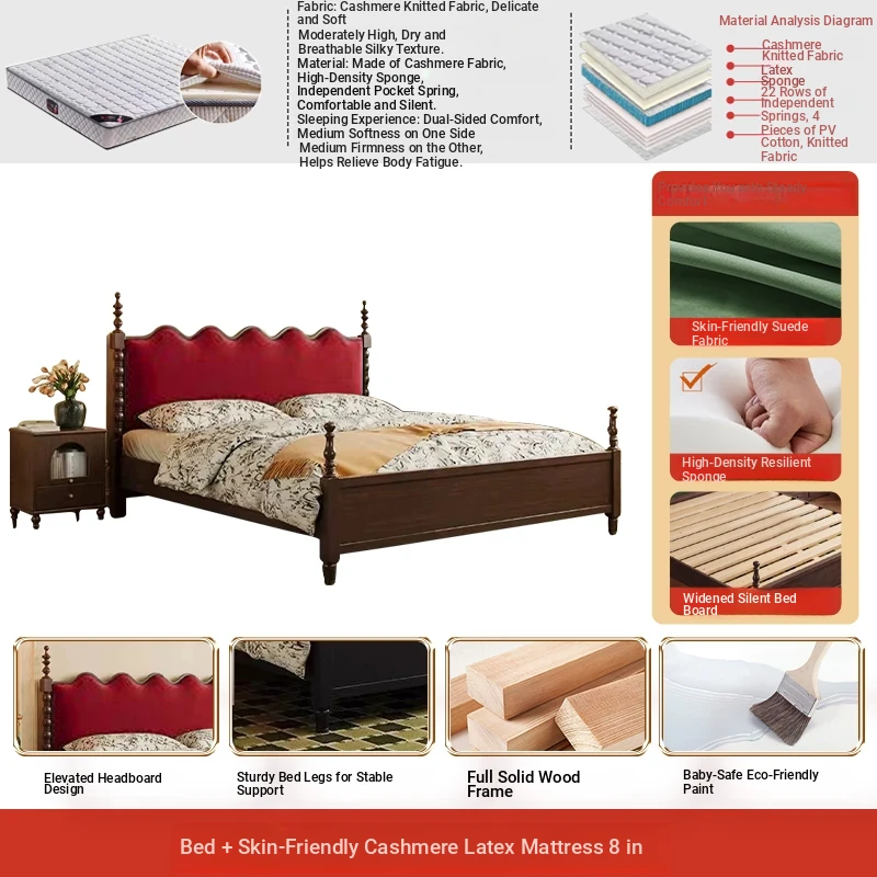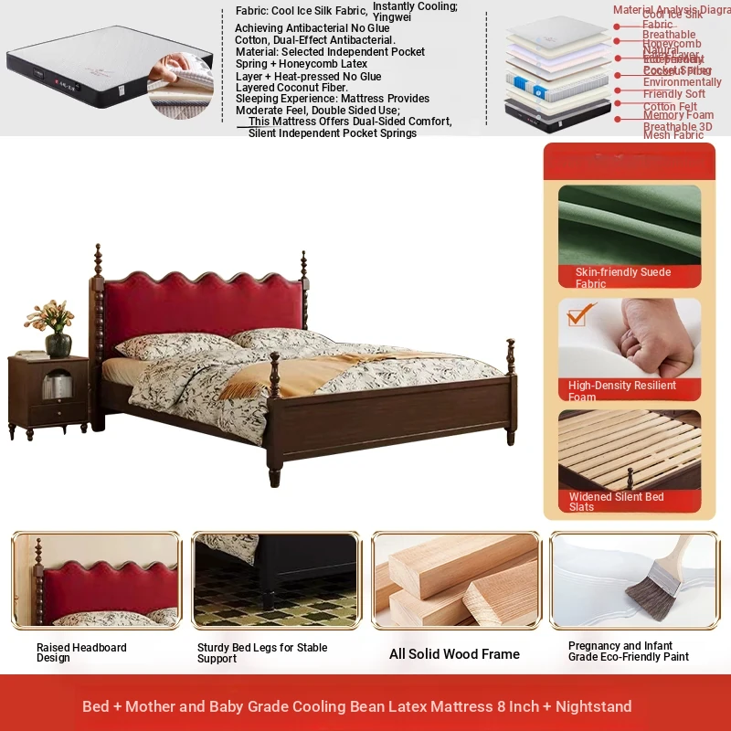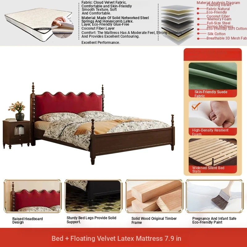 Elegant Vintage French-Style Solid Wood Bed - 1.8m Double Bed in Classic Black, Perfect for Small Spaces with Ample Storage and Cozy Soft Design
