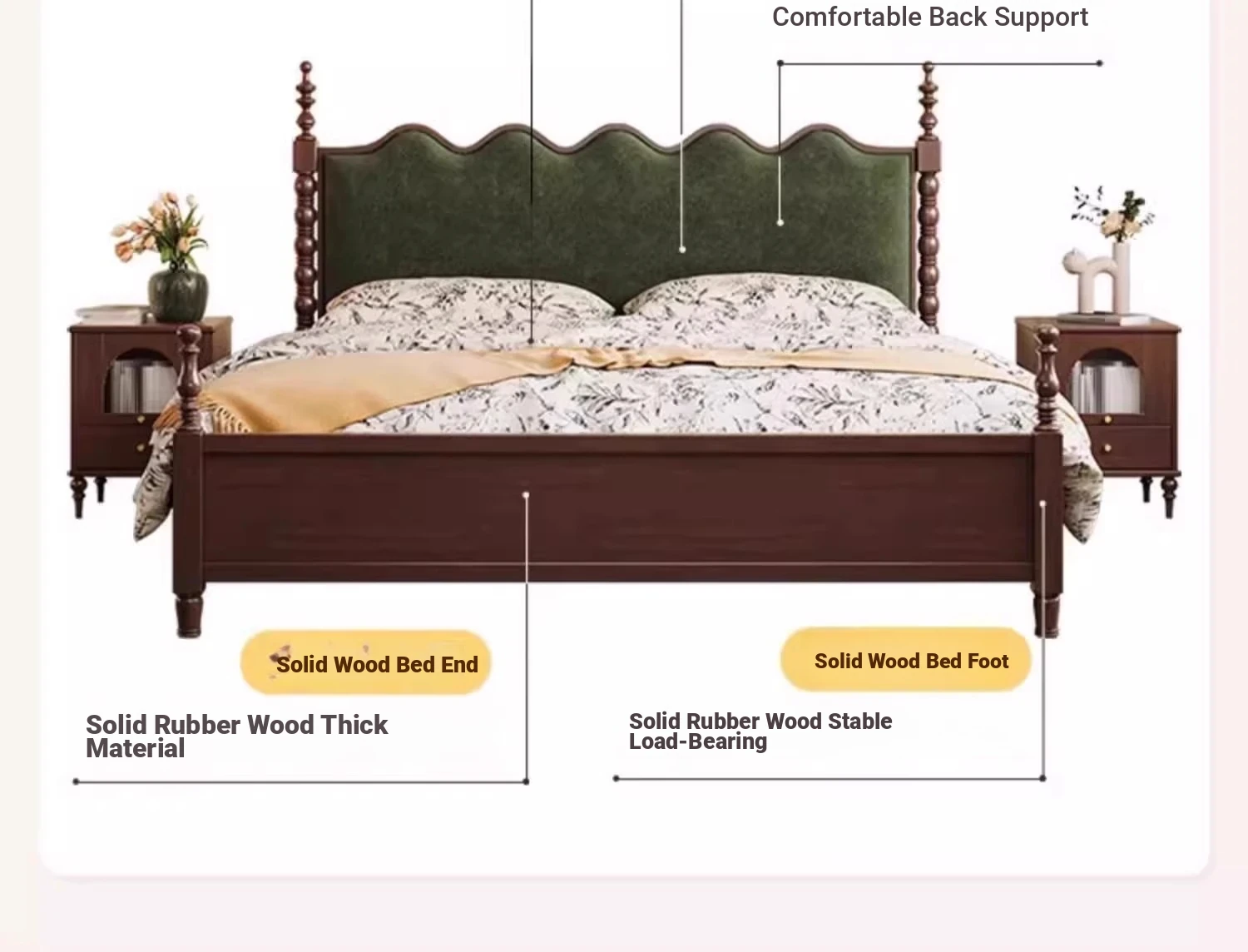Retro solid wood single bed [3 color optional need to contact Customer Service]]