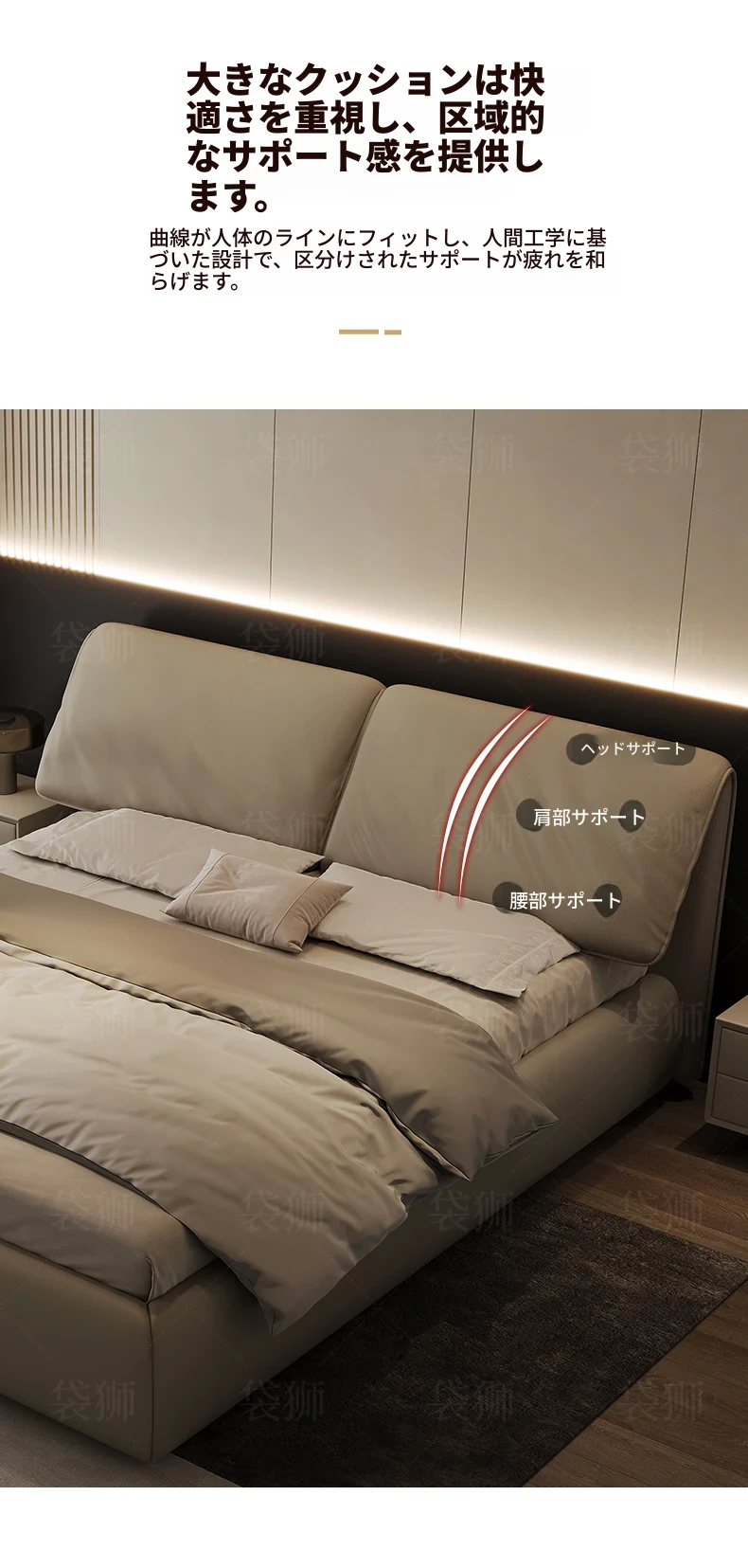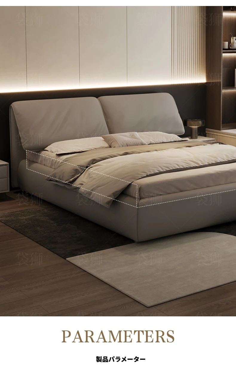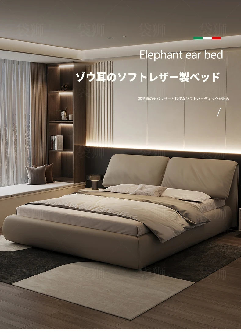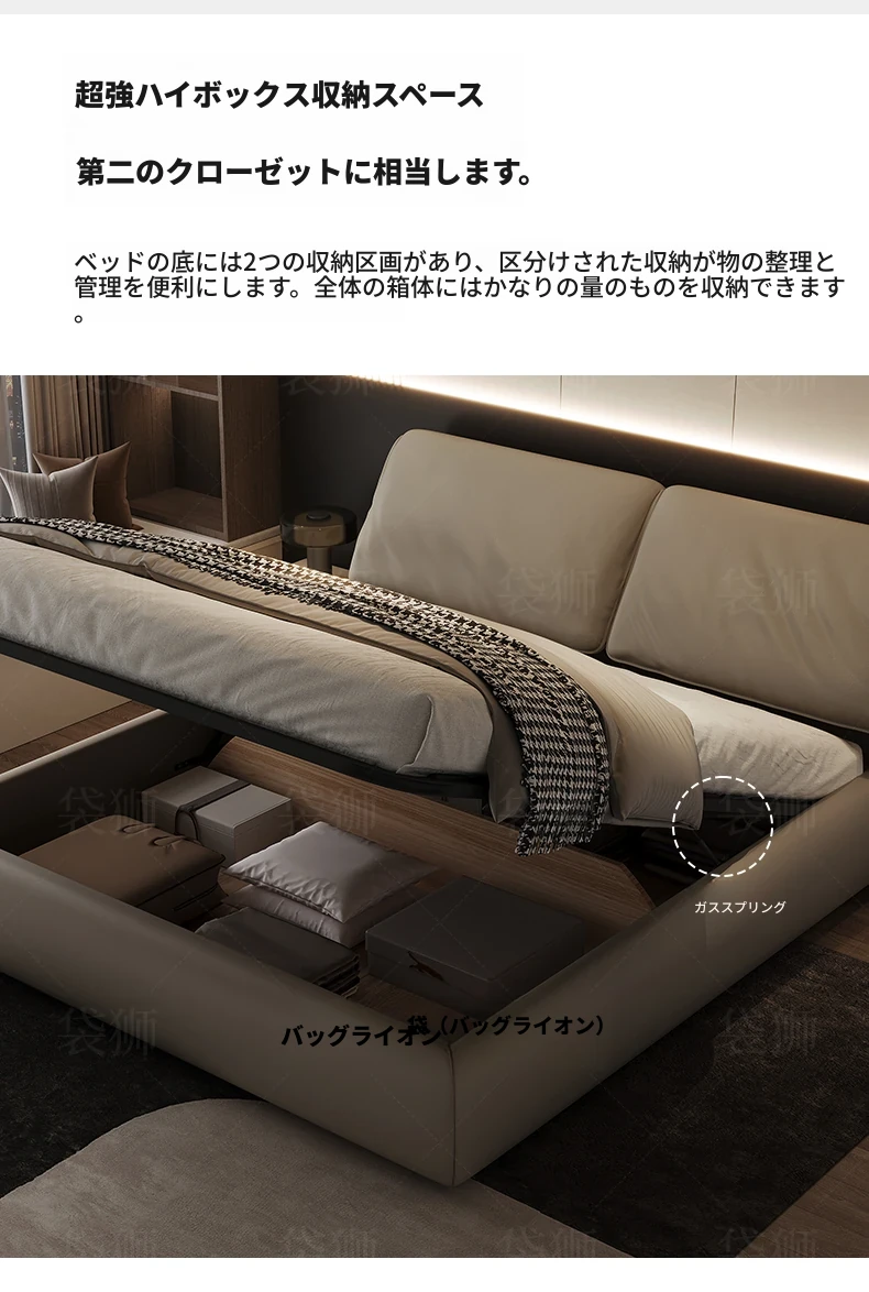 リュクスなレザー製ベッド|袋狮大象耳朵デザインの高箱収納ソフトパッケージベッド|主寝室に最適!サイズ200×220cmで極上の眠りを実現!