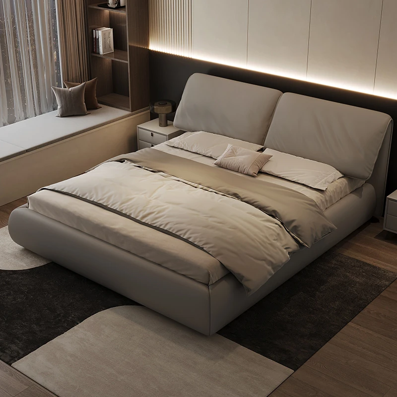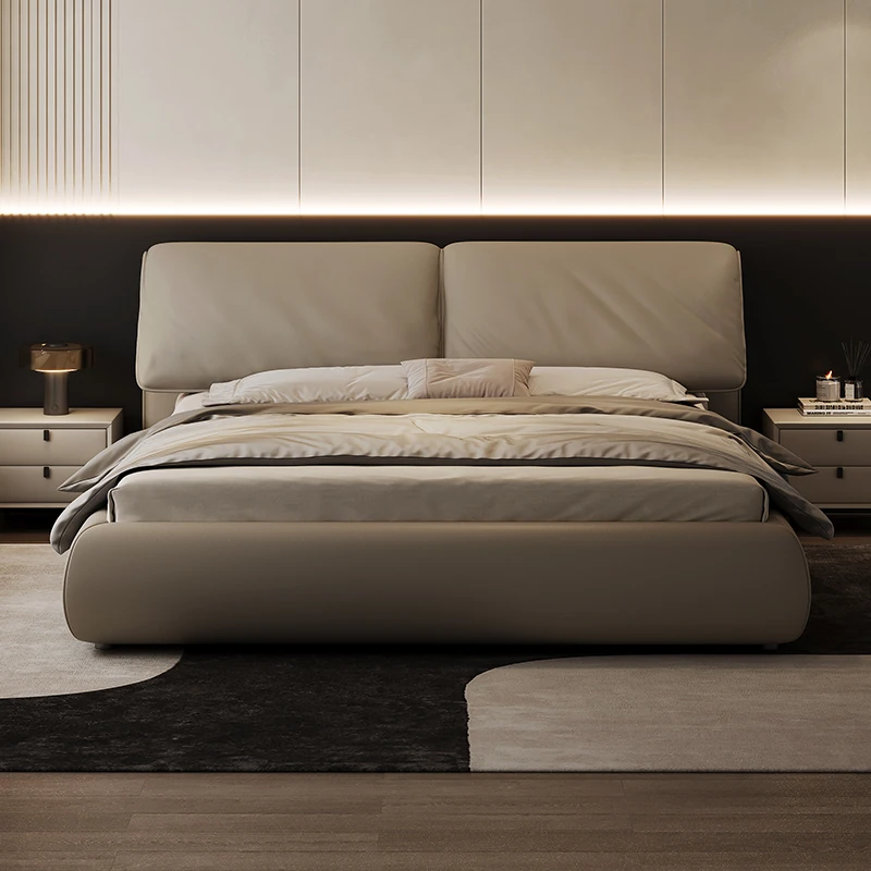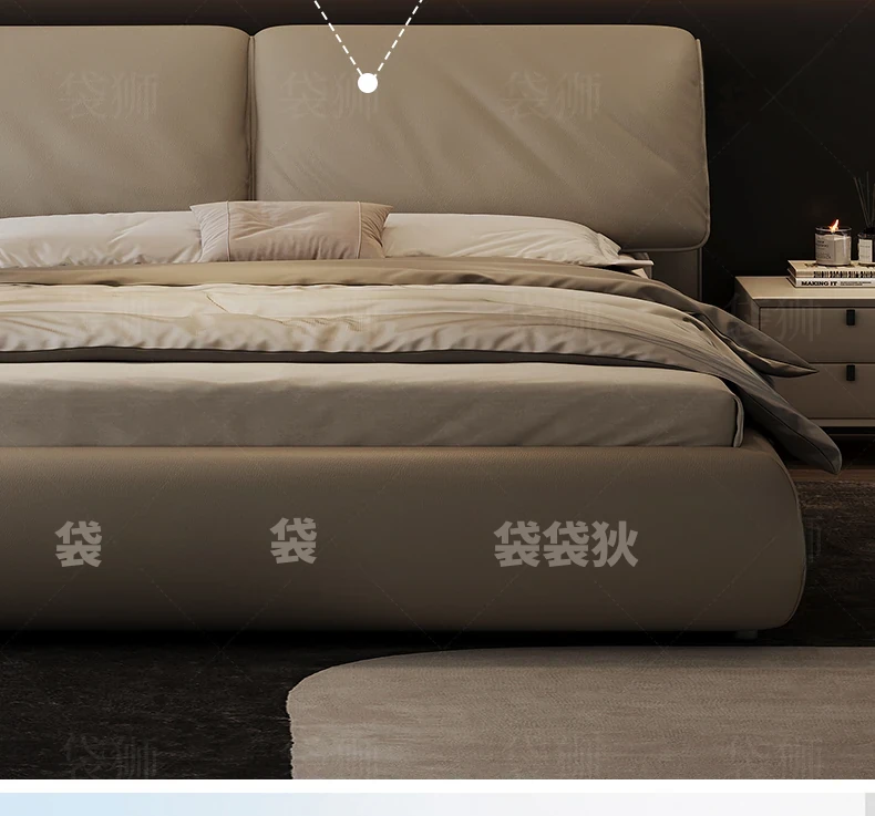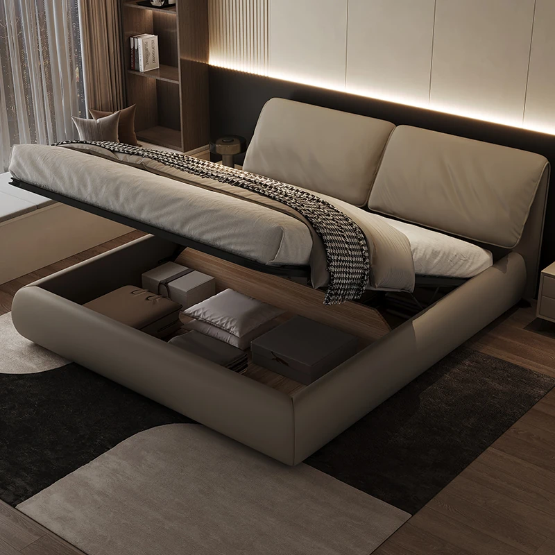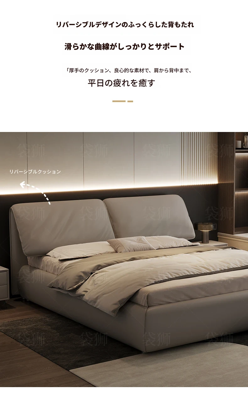 リュクスなレザー製ベッド|袋狮大象耳朵デザインの高箱収納ソフトパッケージベッド|主寝室に最適!サイズ200×220cmで極上の眠りを実現!