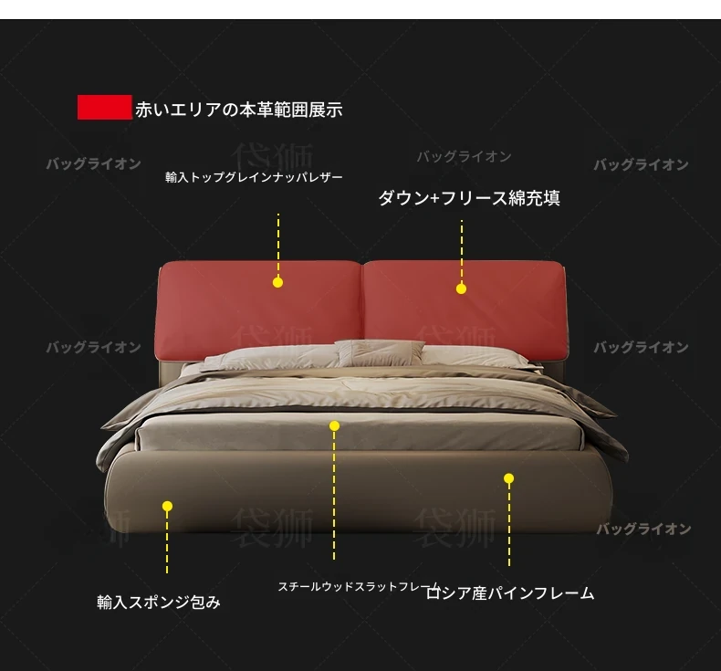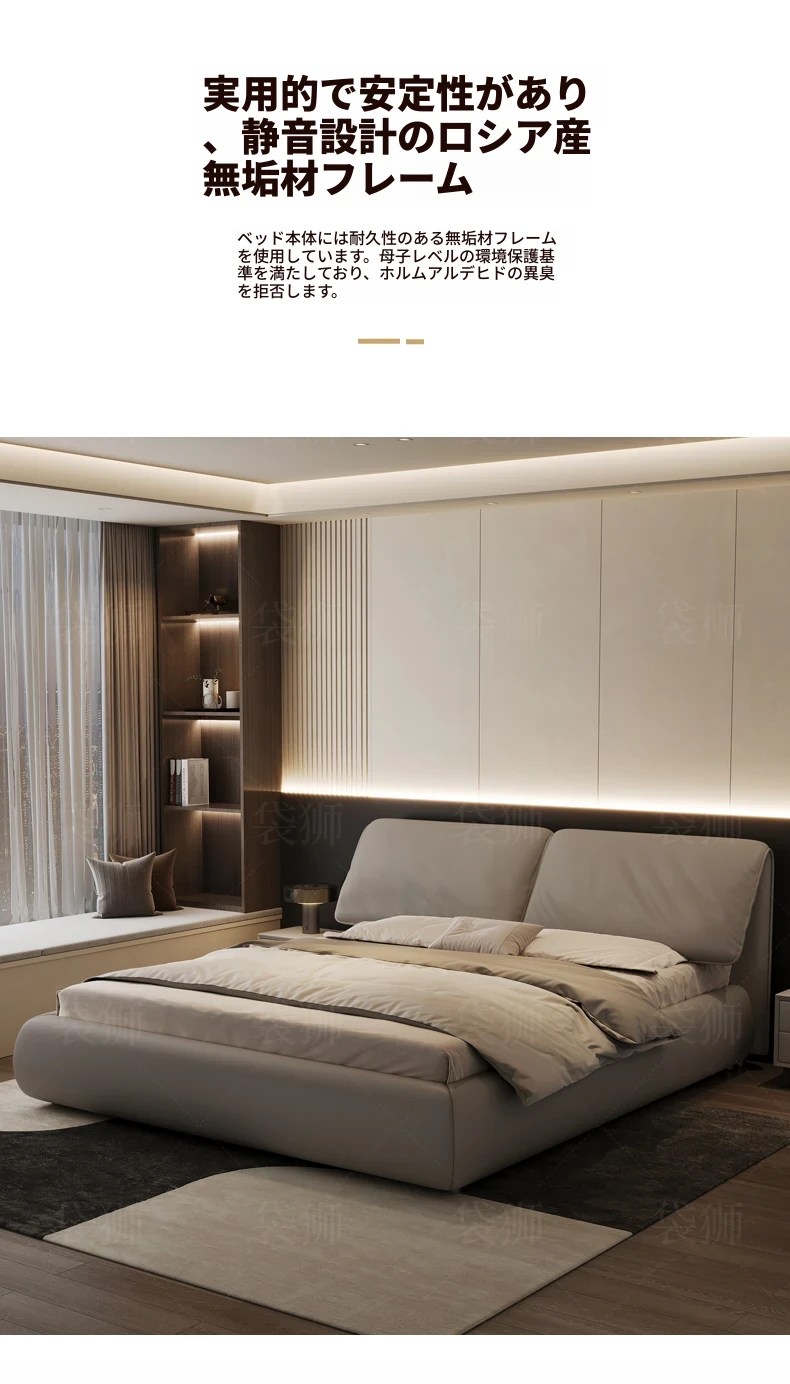 本革ベッド+9つ星深睡天丝独立ポケットスプリングマットレス【やや柔らかめ】 本革ベッド+9つ星深睡天丝独立ポケットスプリングマットレス【やや柔らかめ】