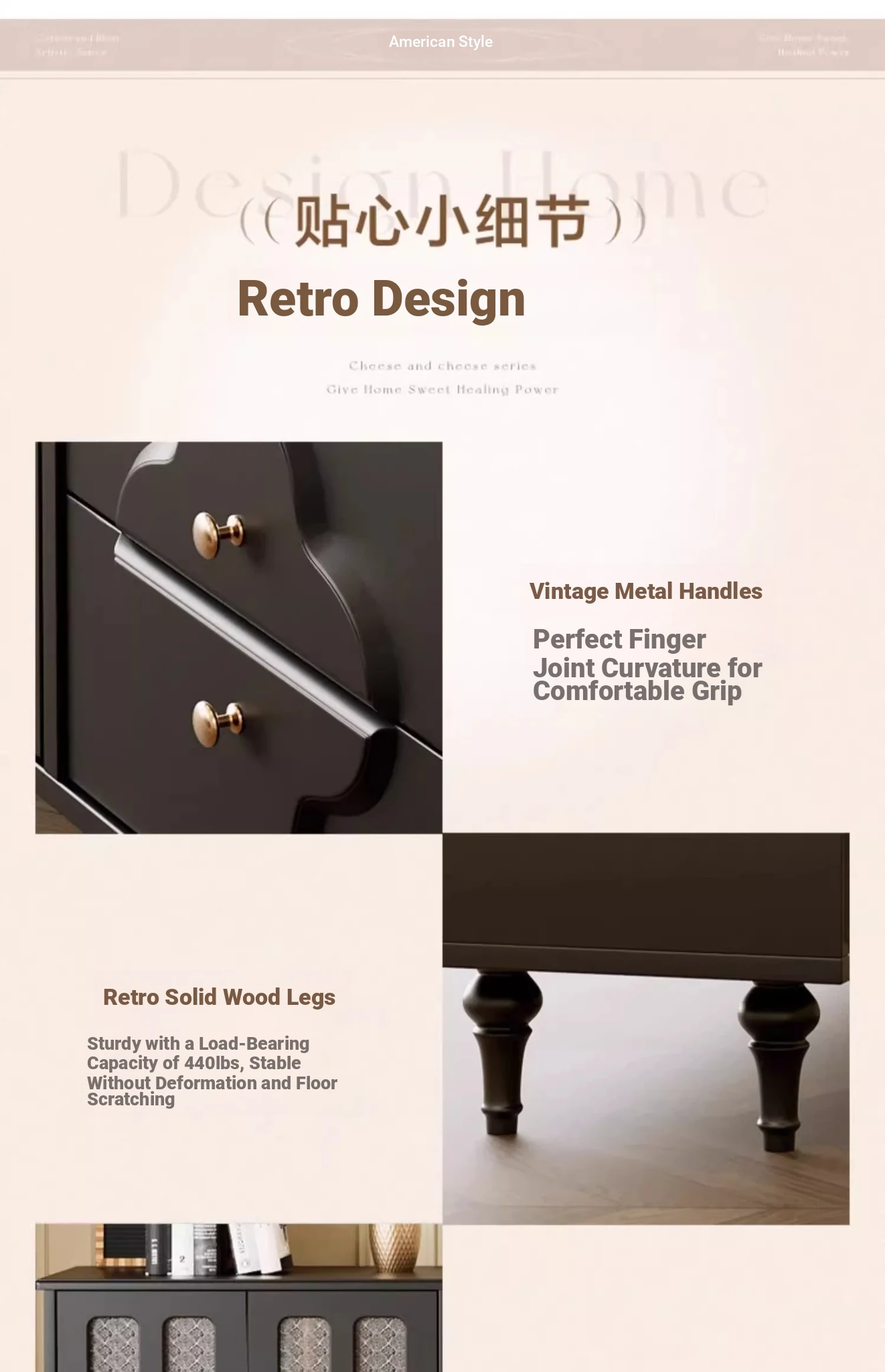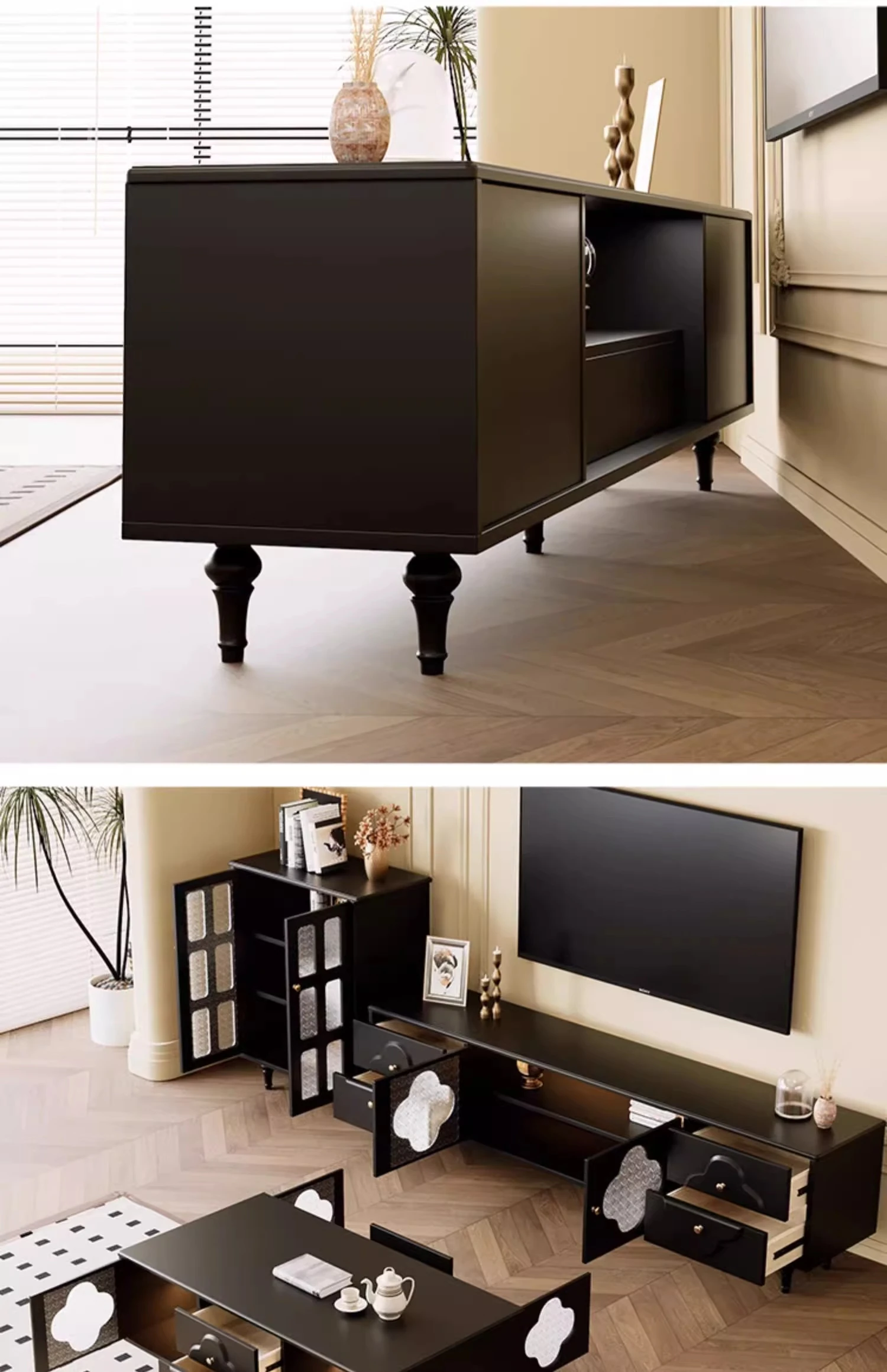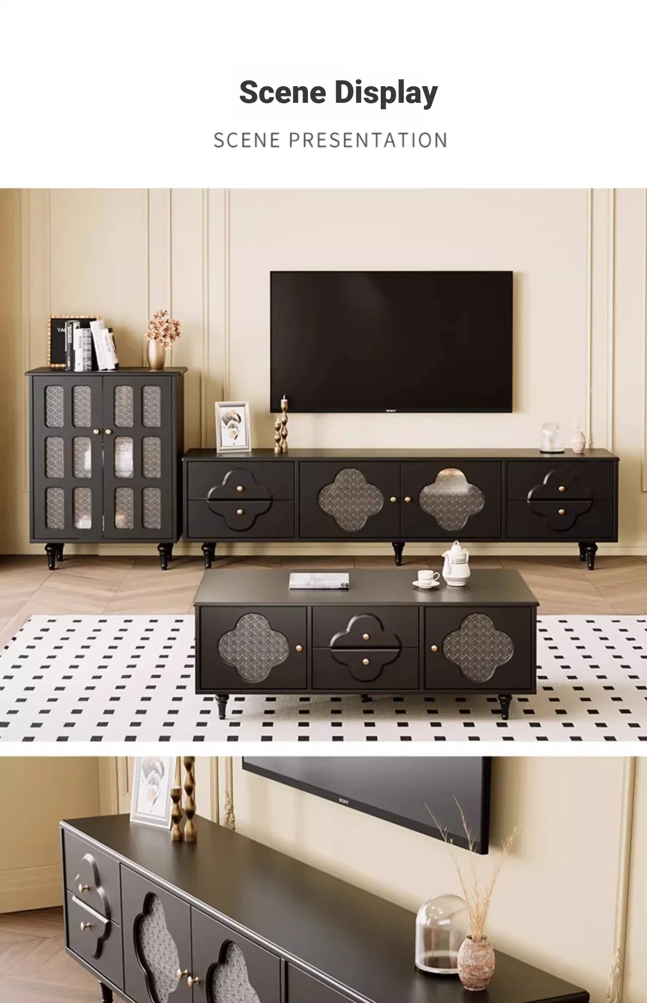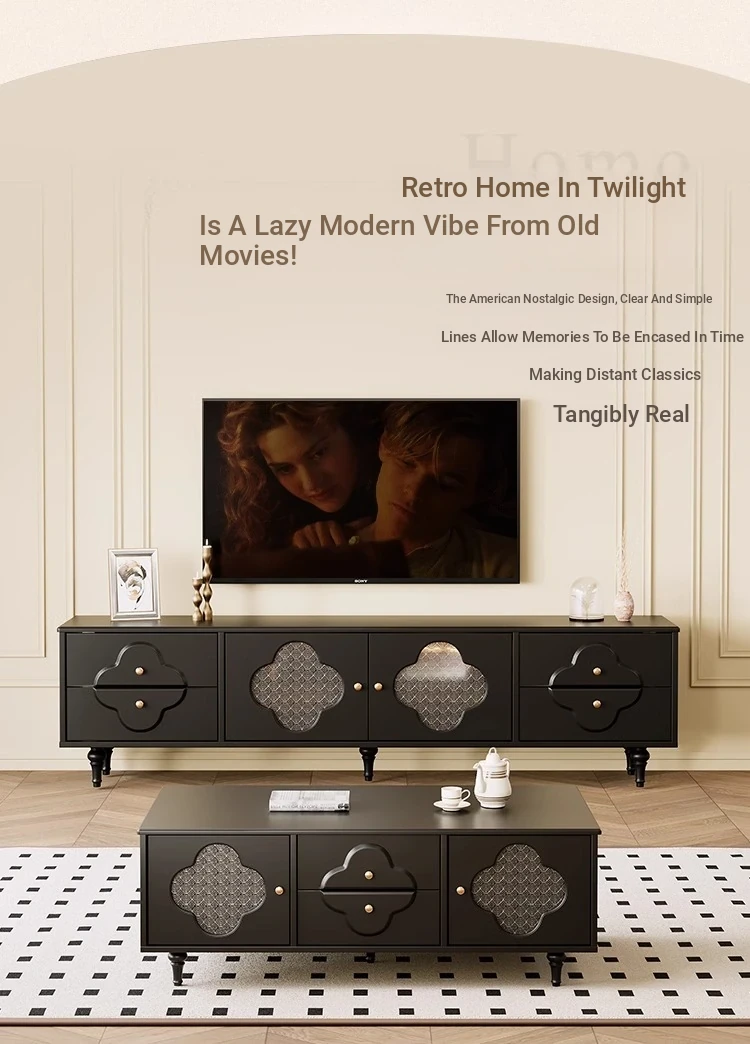 Vintage-style Tea Table Set for Living Room – Elegant TV Cabinet for Home Use